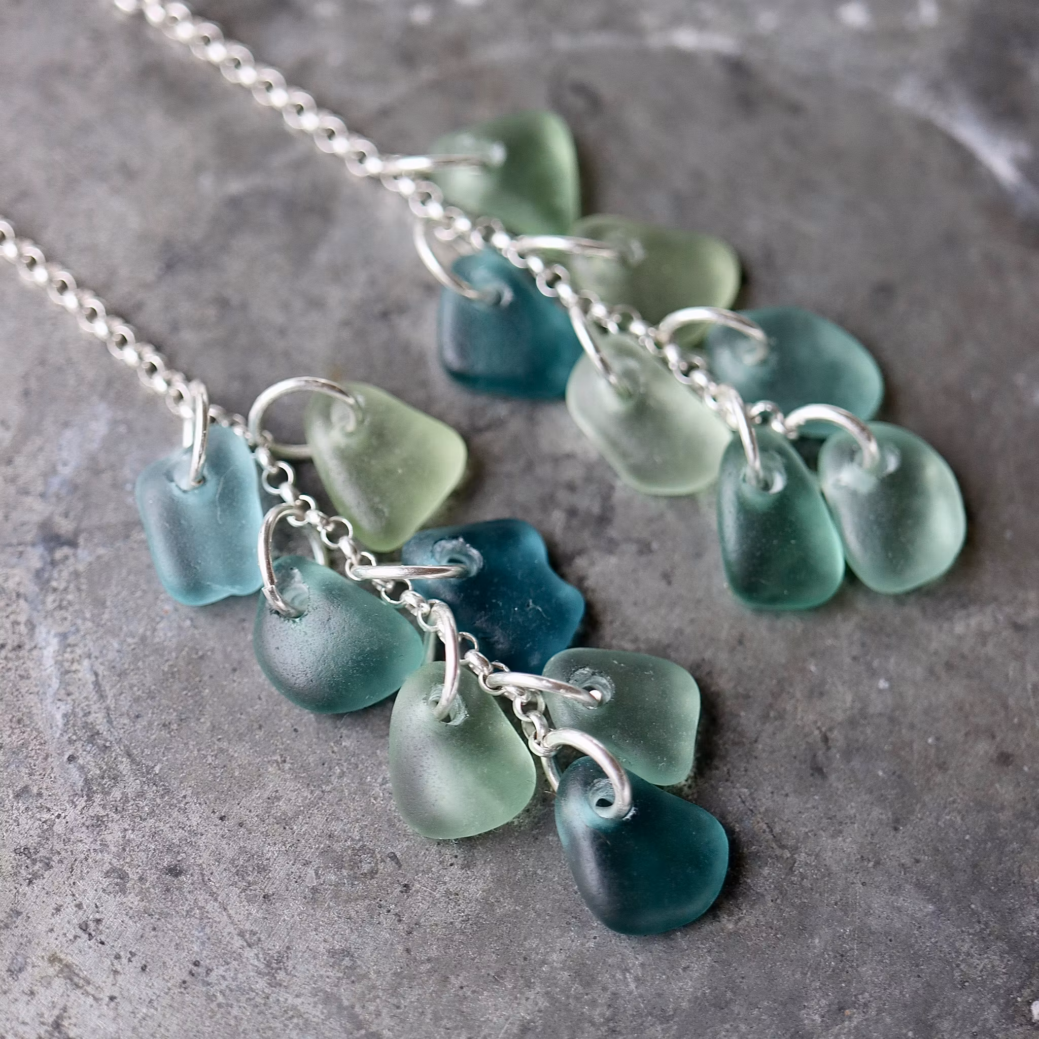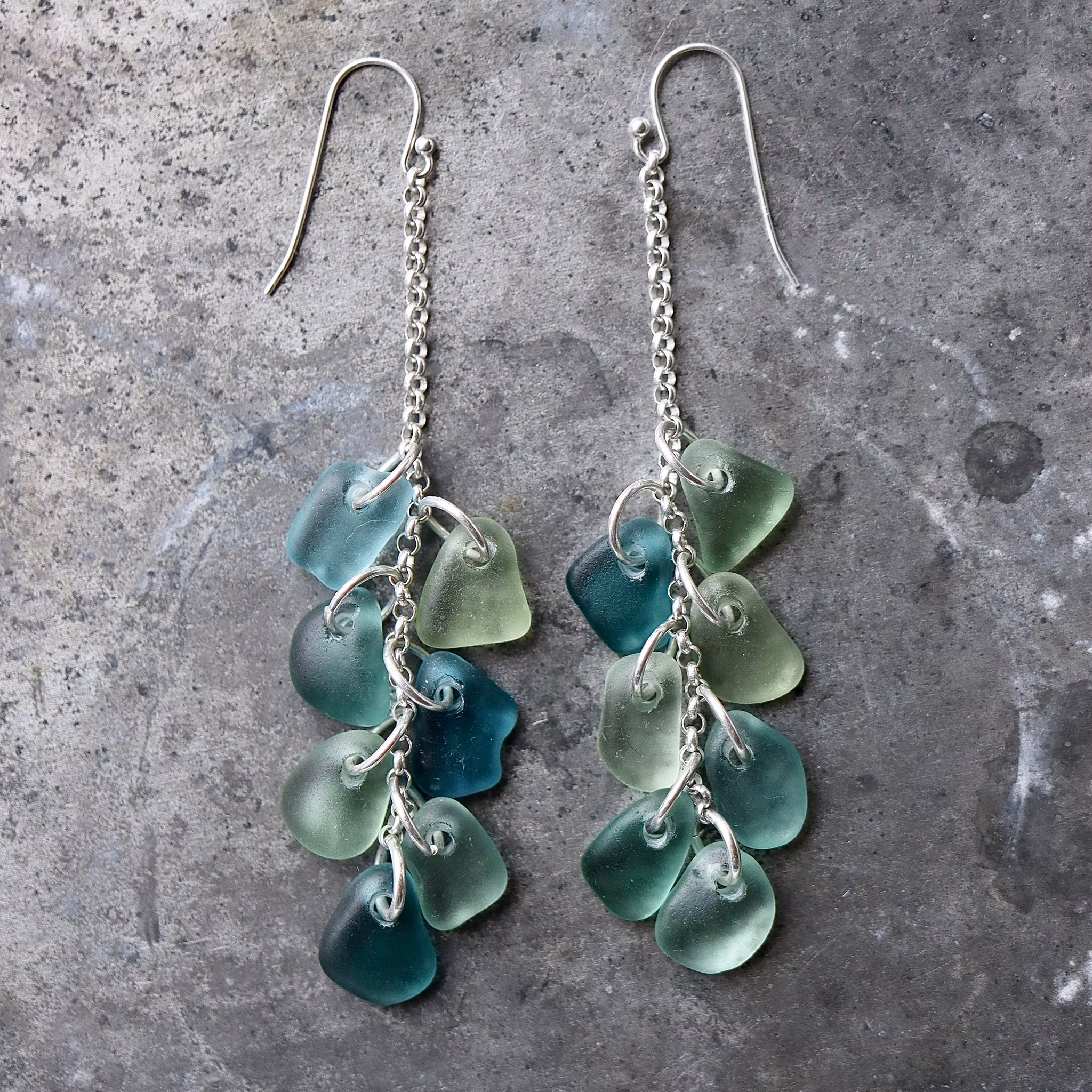 Observera att havsglasbitarna i paret inte är identiska, utan varierar en aning i form, tjocklek och färgnyans.