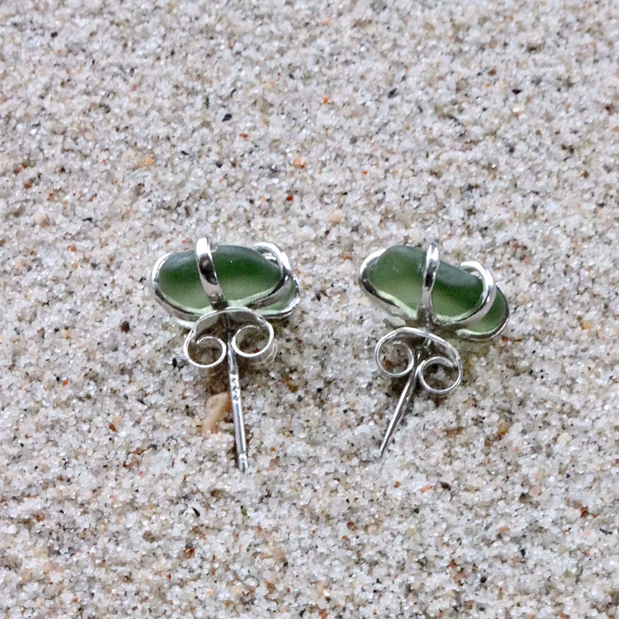Observera att de två havsglasbitarna i paret inte är identiska, utan varierar en aning i form, tjocklek och färgnyans.
