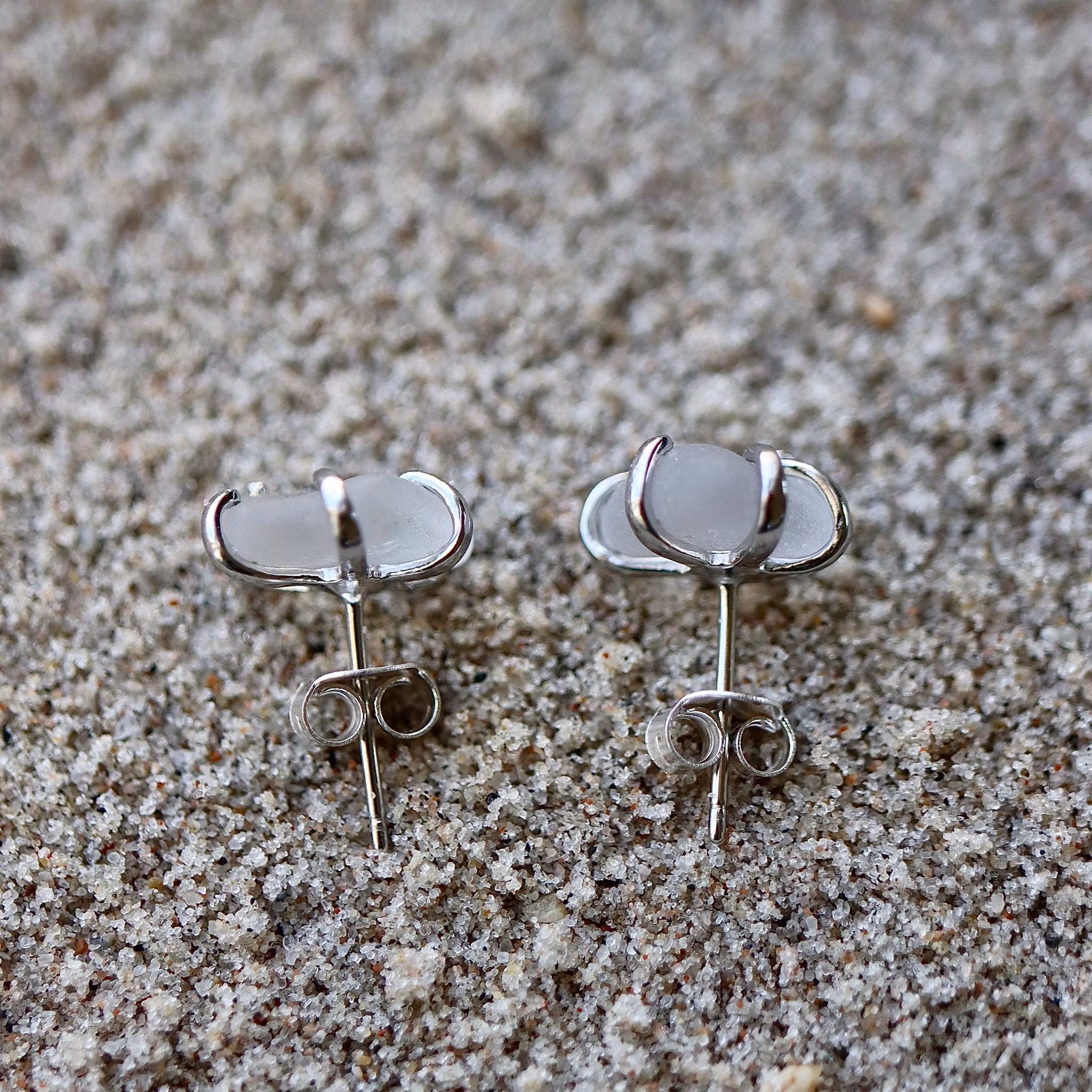 Observera att de två havsglasbitarna i paret inte är identiska, utan varierar en aning i form, tjocklek och färgnyans.