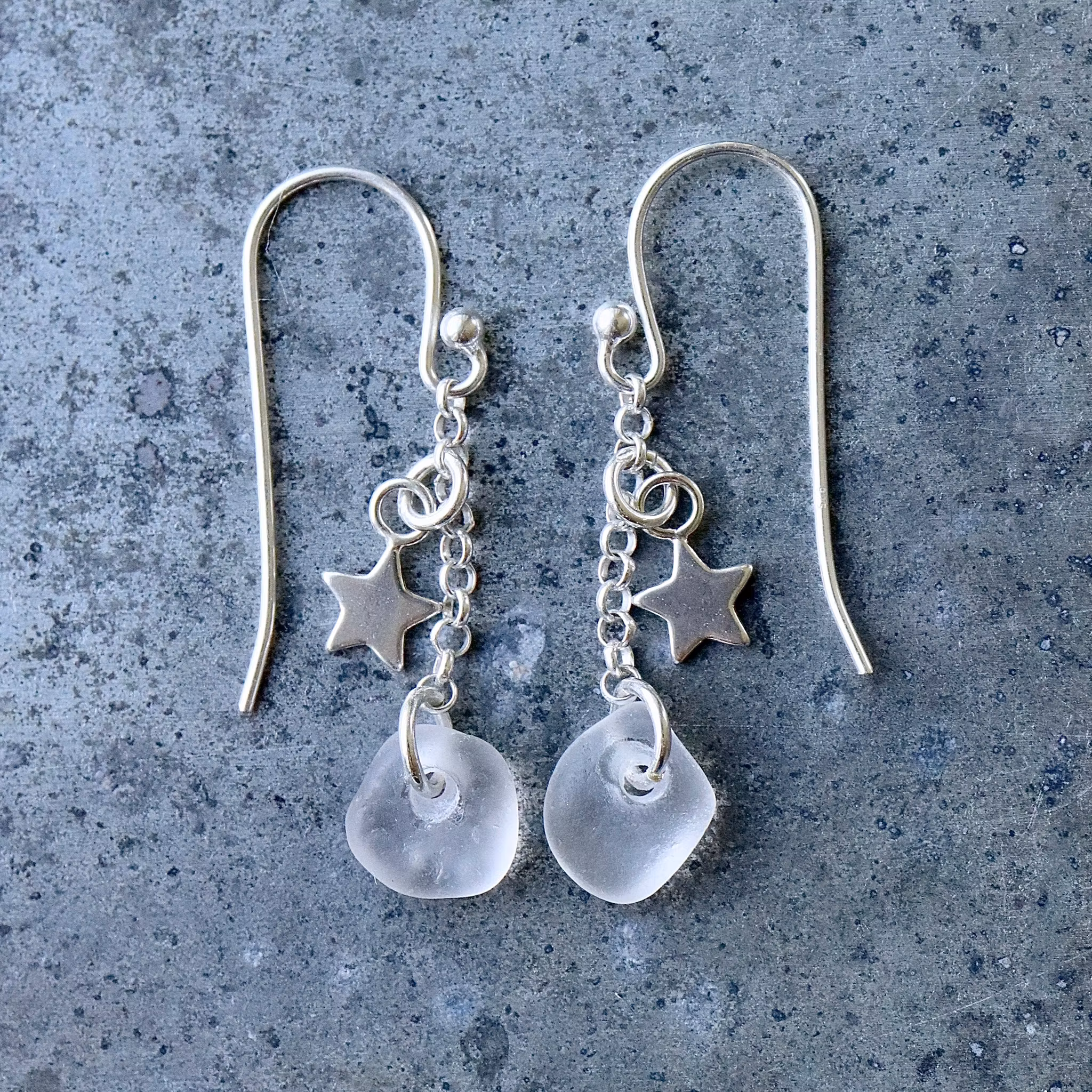 Observera att de två havsglasbitarna i paret inte är identiska, utan varierar en aning i form, tjocklek och färgnyans.