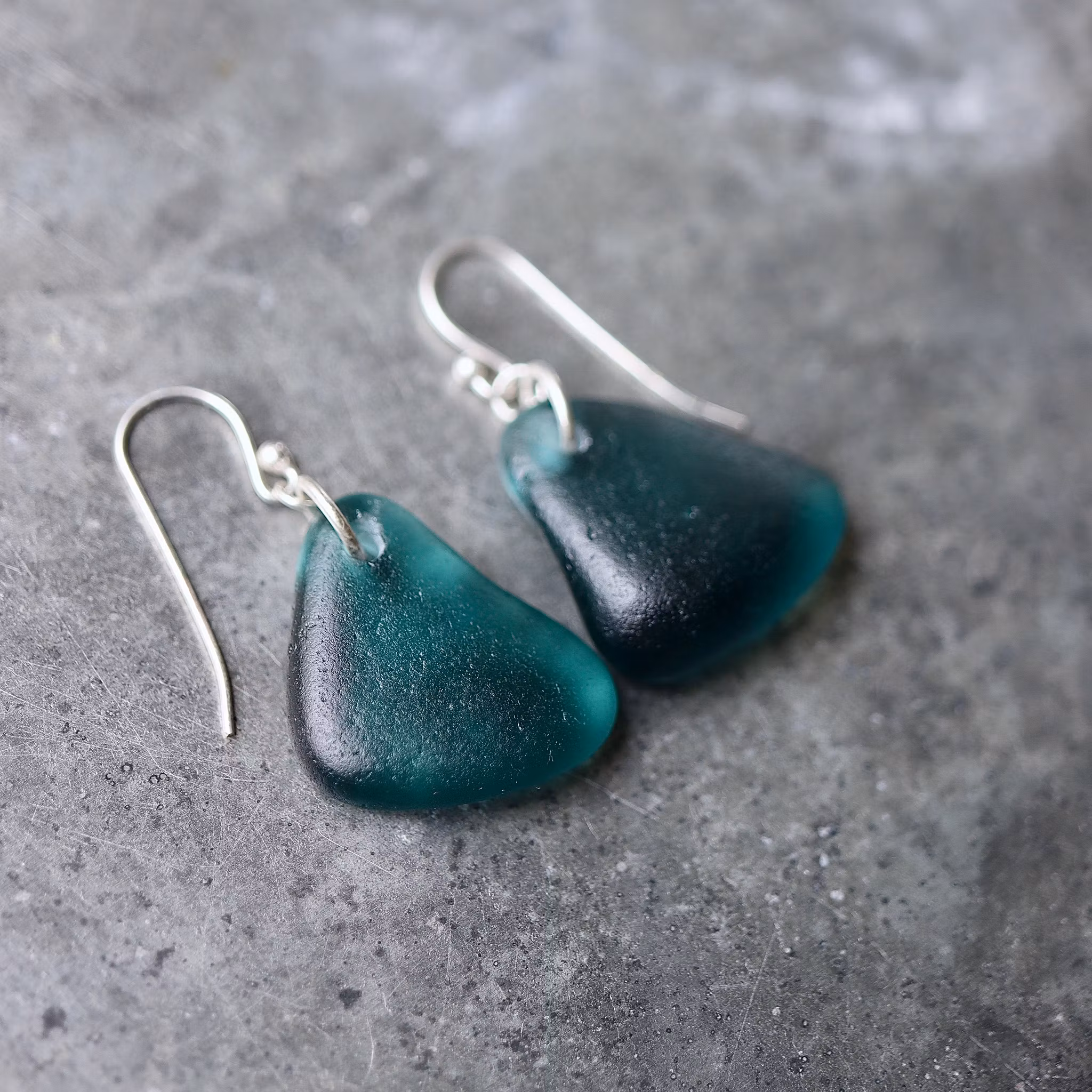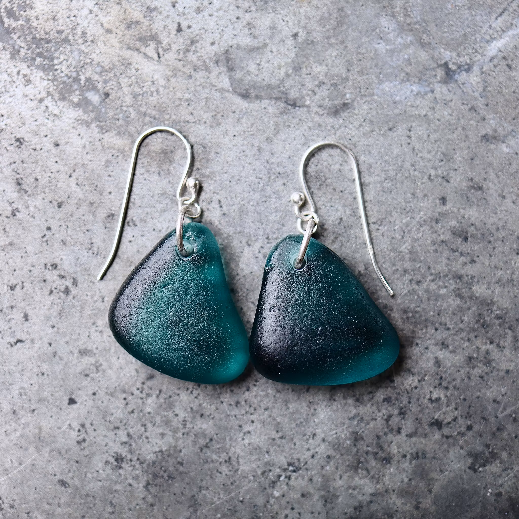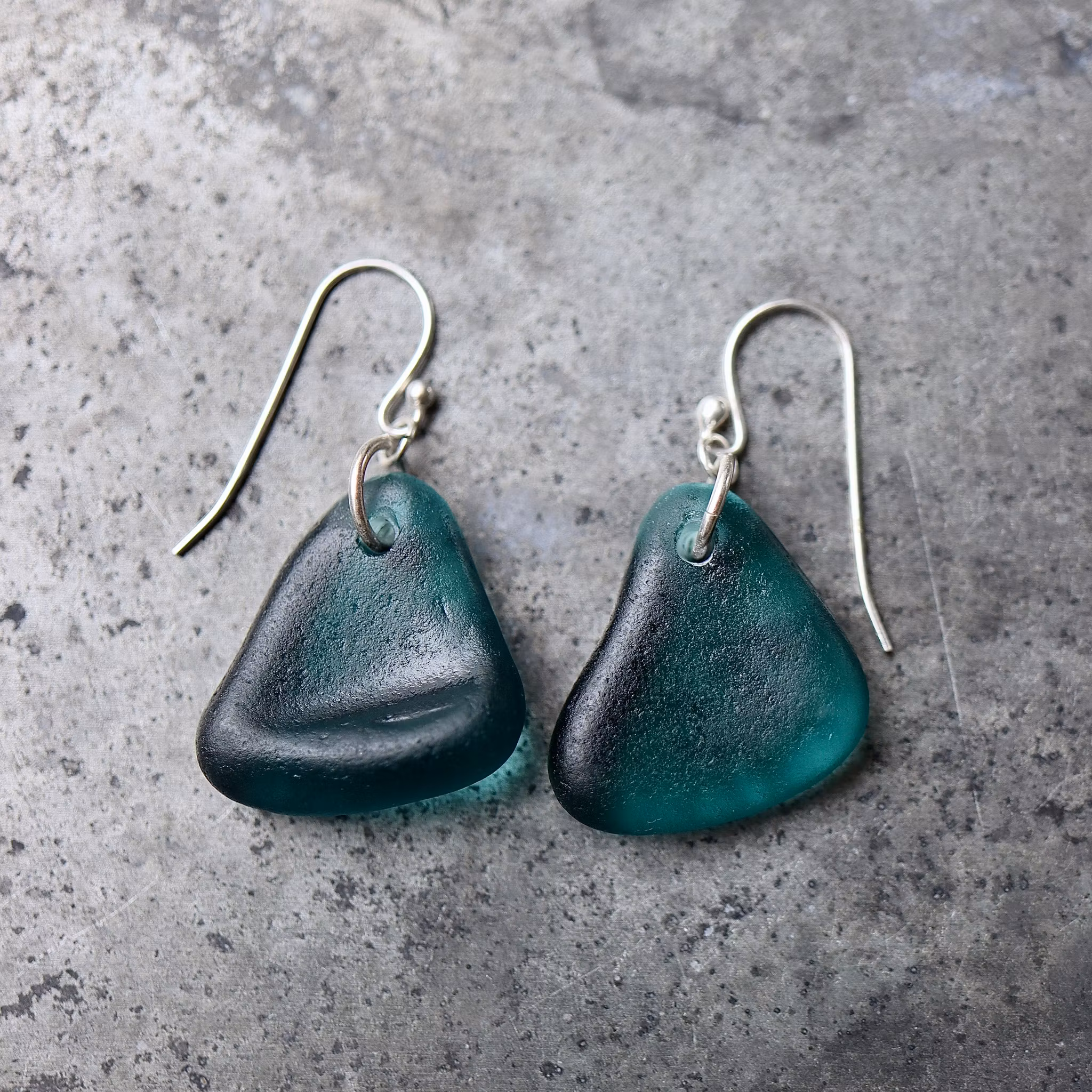 Observera att de två havsglasbitarna i paret inte är identiska, utan varierar en aning i form, tjocklek och färgnyans.