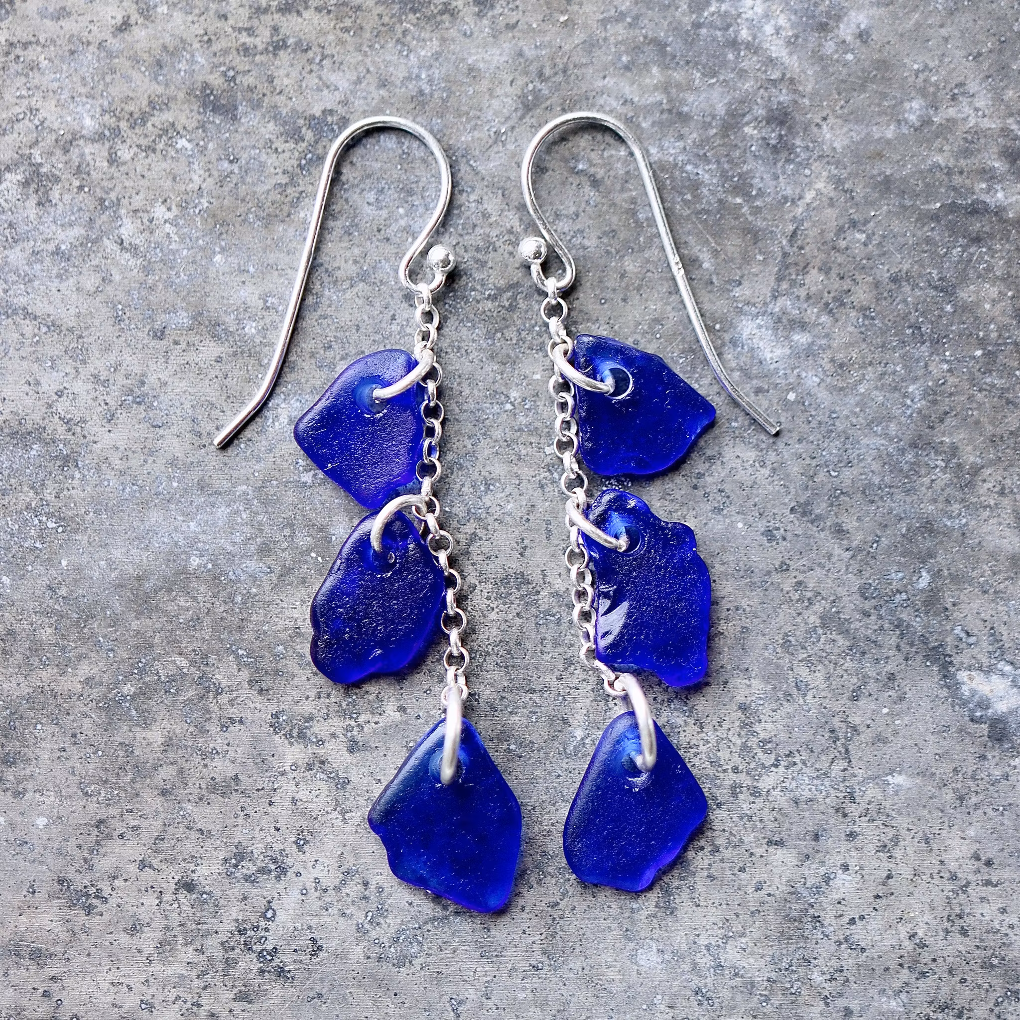 Par med sex matchande havsglas, örkrokar och kedja av äkta silver.