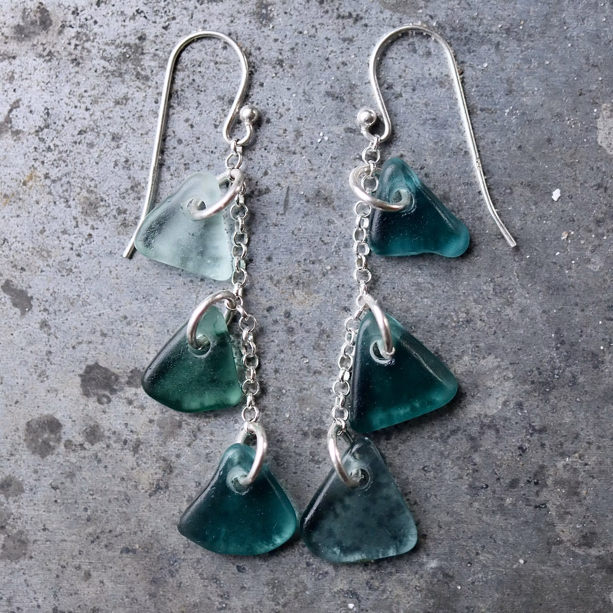 Par med sex matchande havsglas, örkrokar och kedja av äkta silver.