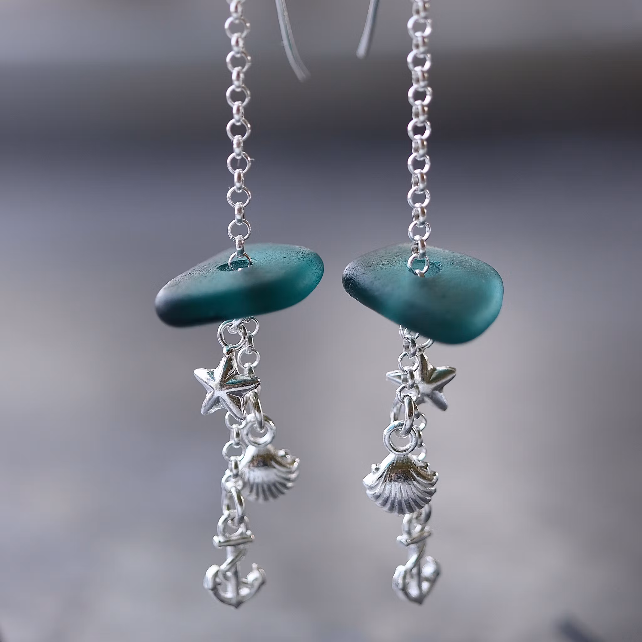 Observera att de två havsglasbitarna i paret inte är identiska, utan varierar en aning i form, tjocklek och färgnyans.