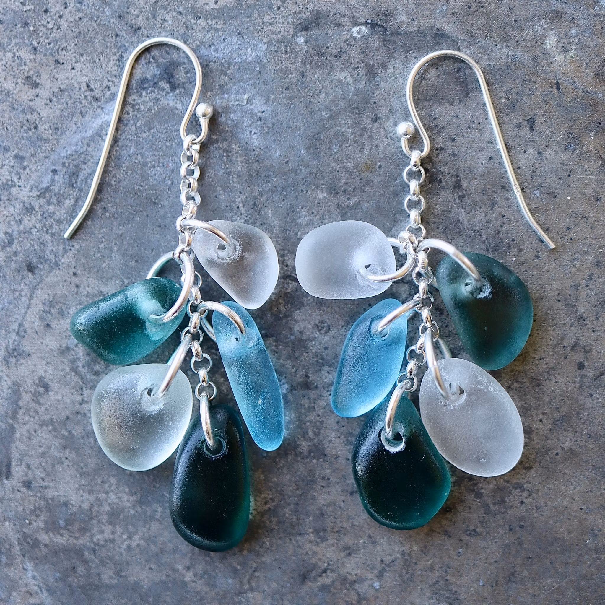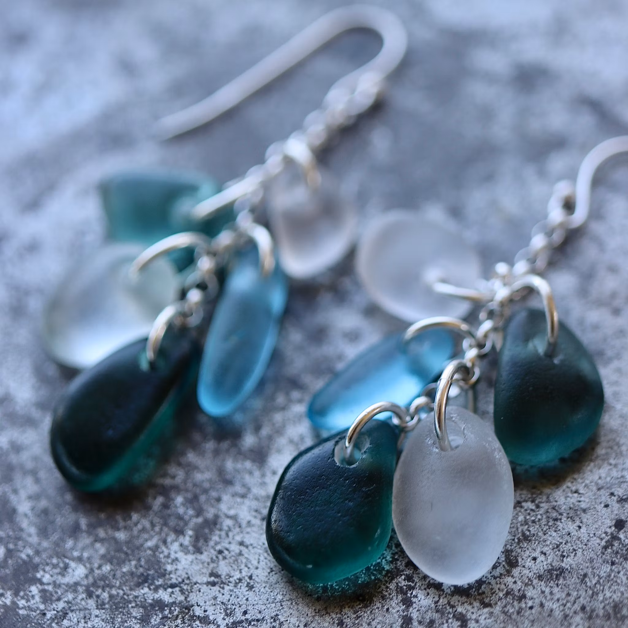 Observera att havsglasbitarna i paret inte är identiska, utan varierar en aning i form, tjocklek och färgnyans.