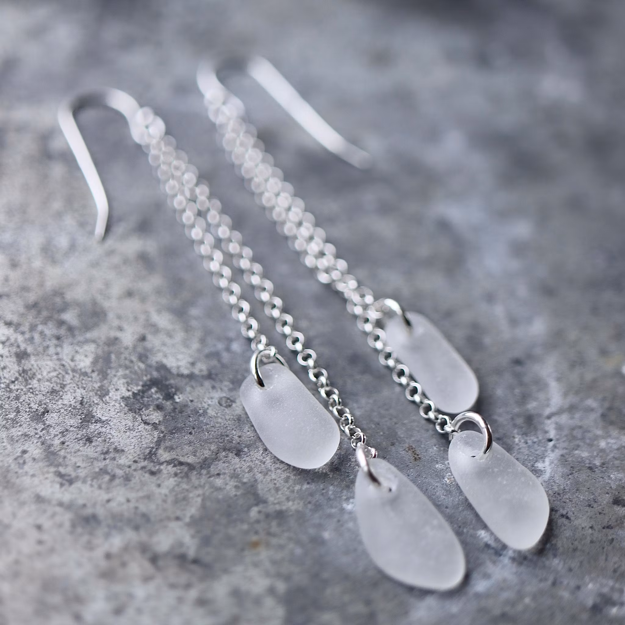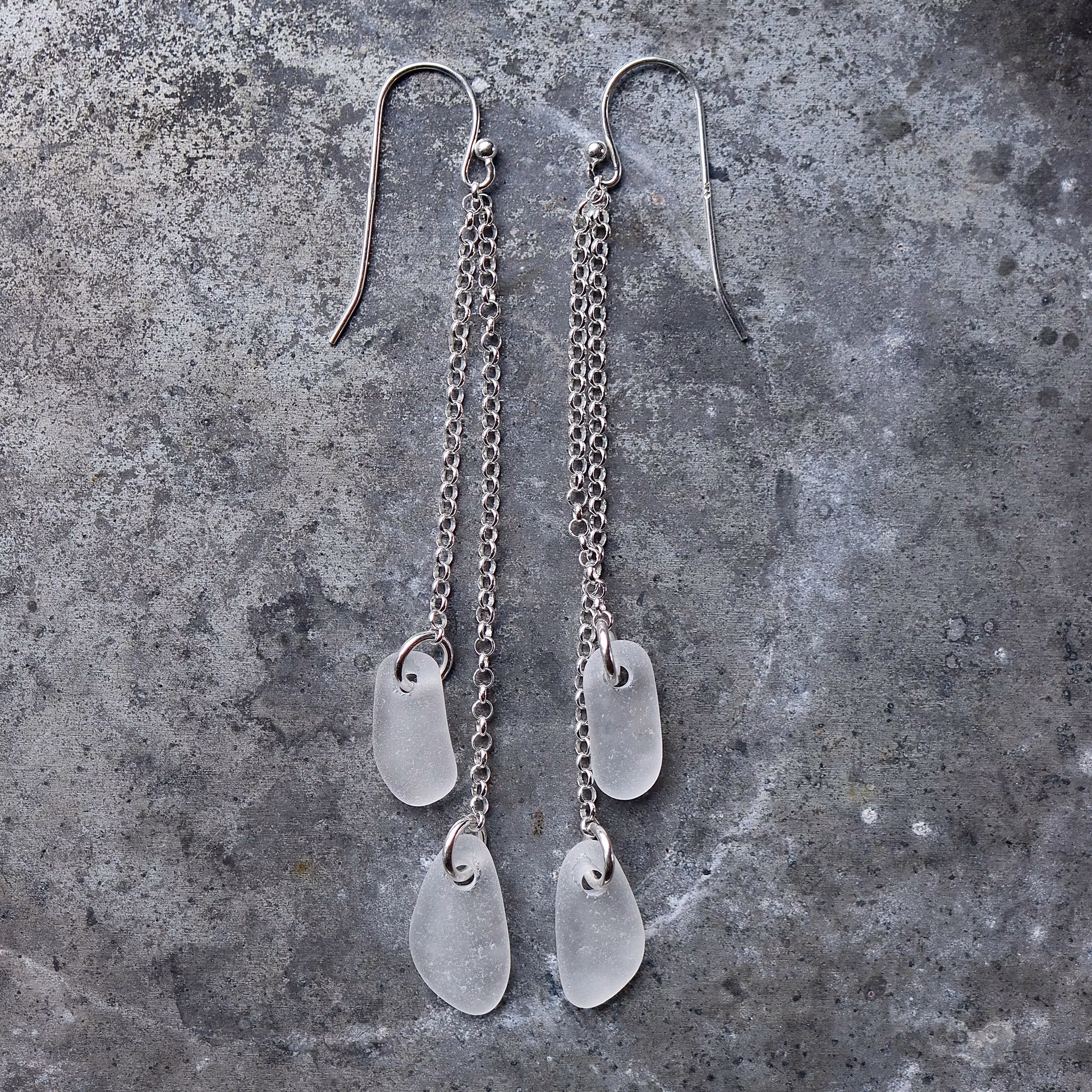 Observera att havsglasbitarna i paret inte är identiska, utan varierar en aning i form, tjocklek och färgnyans.