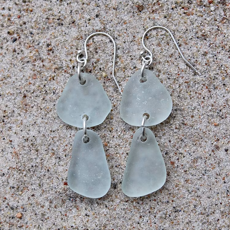 Observera att havsglasbitarna i paret inte är identiska, utan varierar en aning i form, tjocklek och färgnyans.