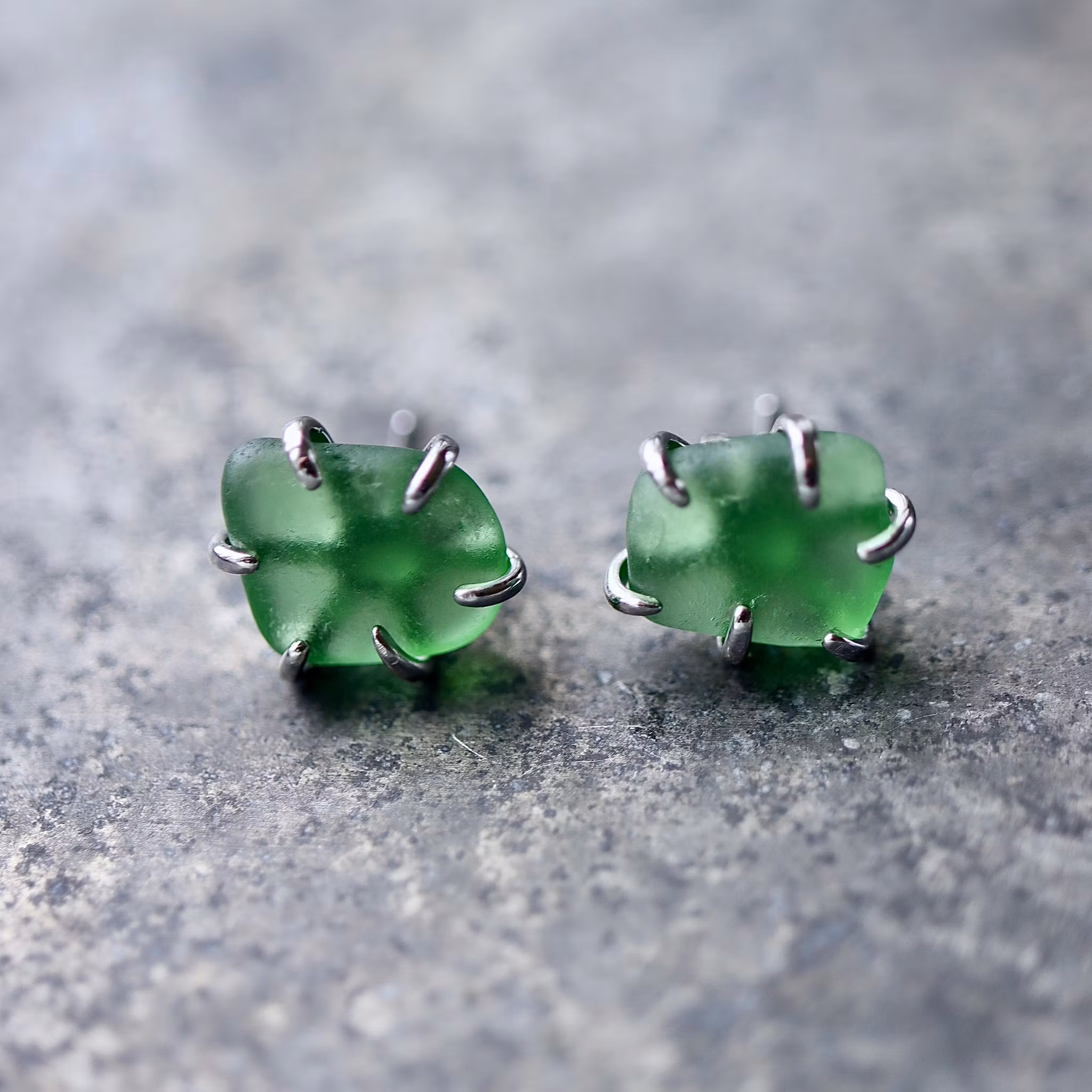 Observera att de två havsglasbitarna i paret inte är identiska, utan varierar en aning i form, tjocklek och färgnyans.