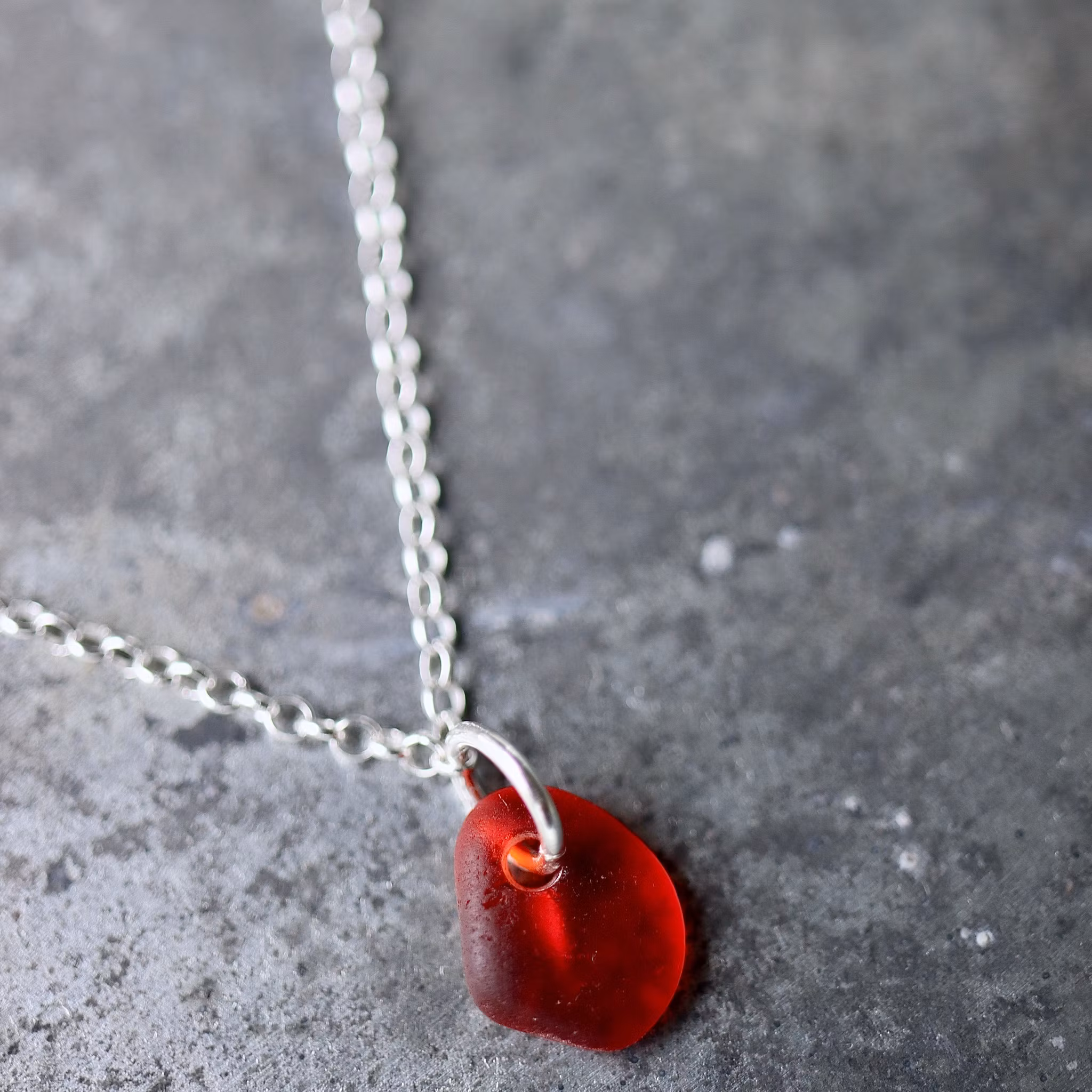 Havsglaset är samlat längs Skånes stränder och helt obearbetat, endast varsamt tvättat och borrat.