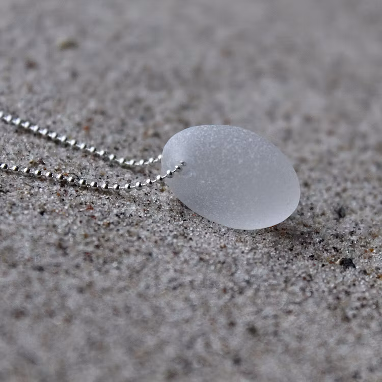 Halskedja av äkta silver, välj mellan 45, 50 och 60 cm, i låset sitter en plexitag "Havsglas" tillverkad i Sverige.