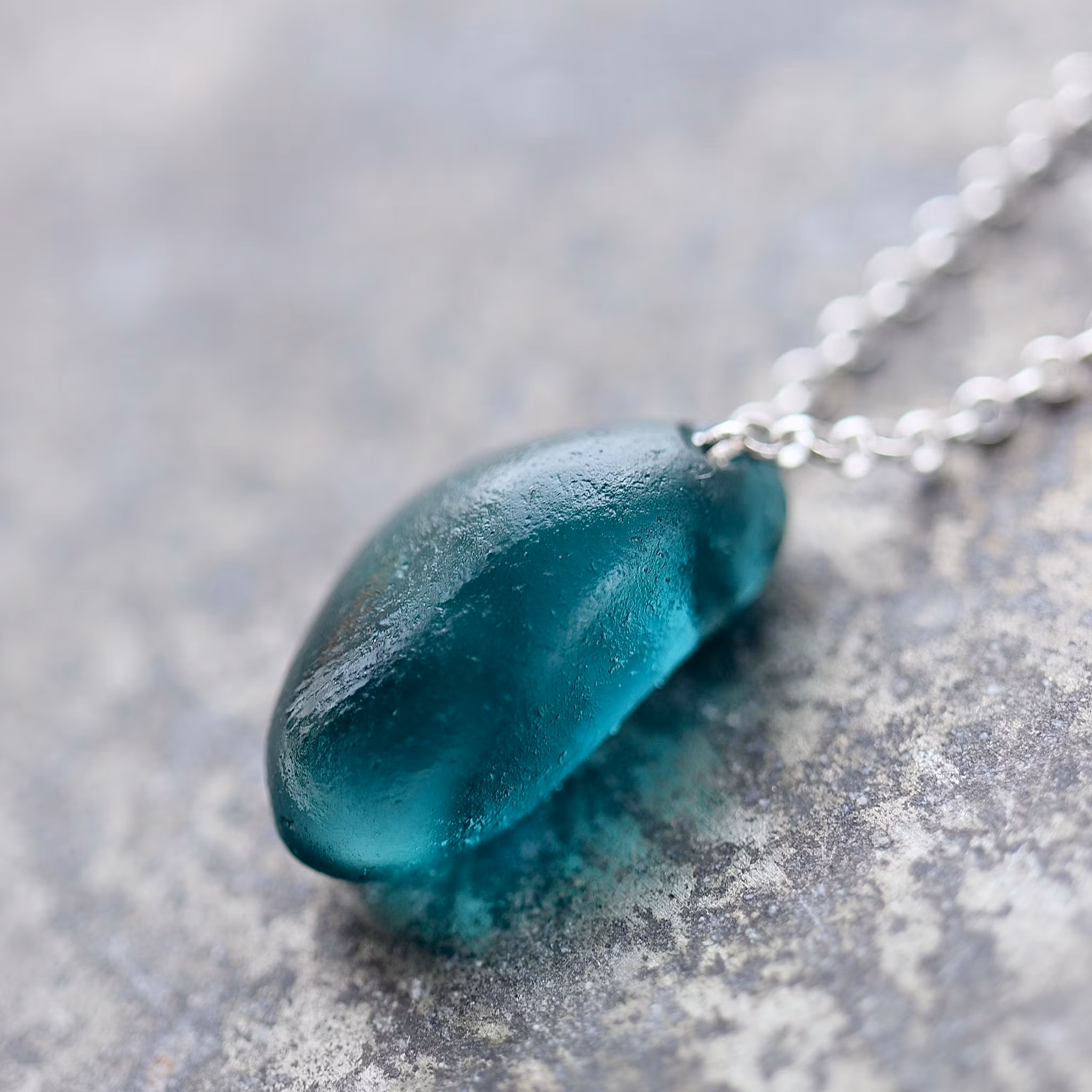 Havsglaset är samlat längs Skånes stränder och helt obearbetat, endast varsamt tvättat och borrat.