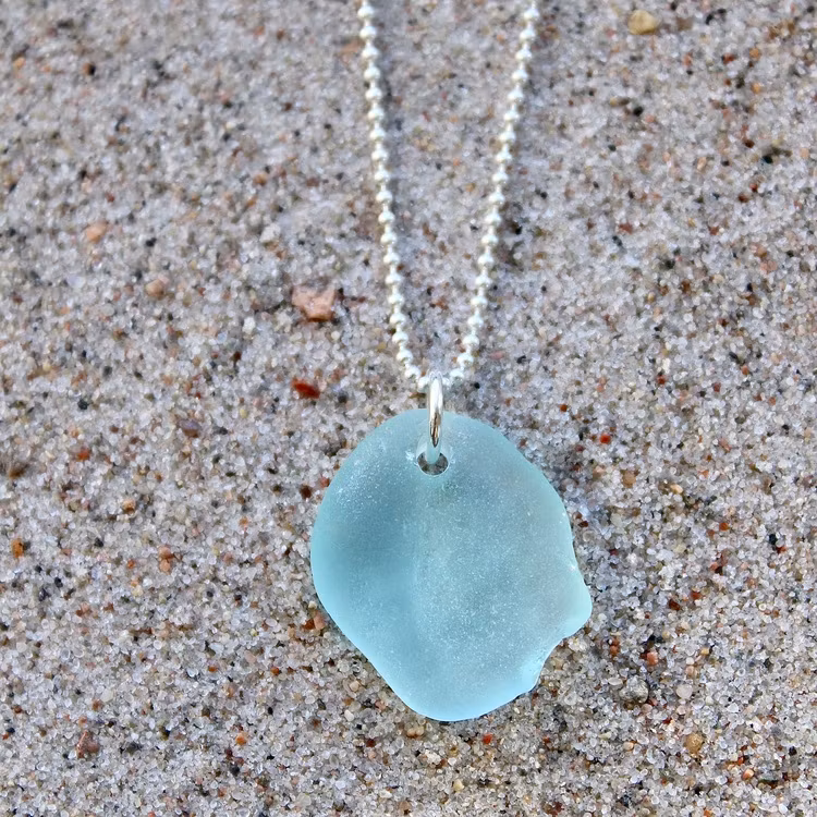 Havsglaset är samlat längs Skånes stränder och helt obearbetat, endast varsamt tvättat och borrat.