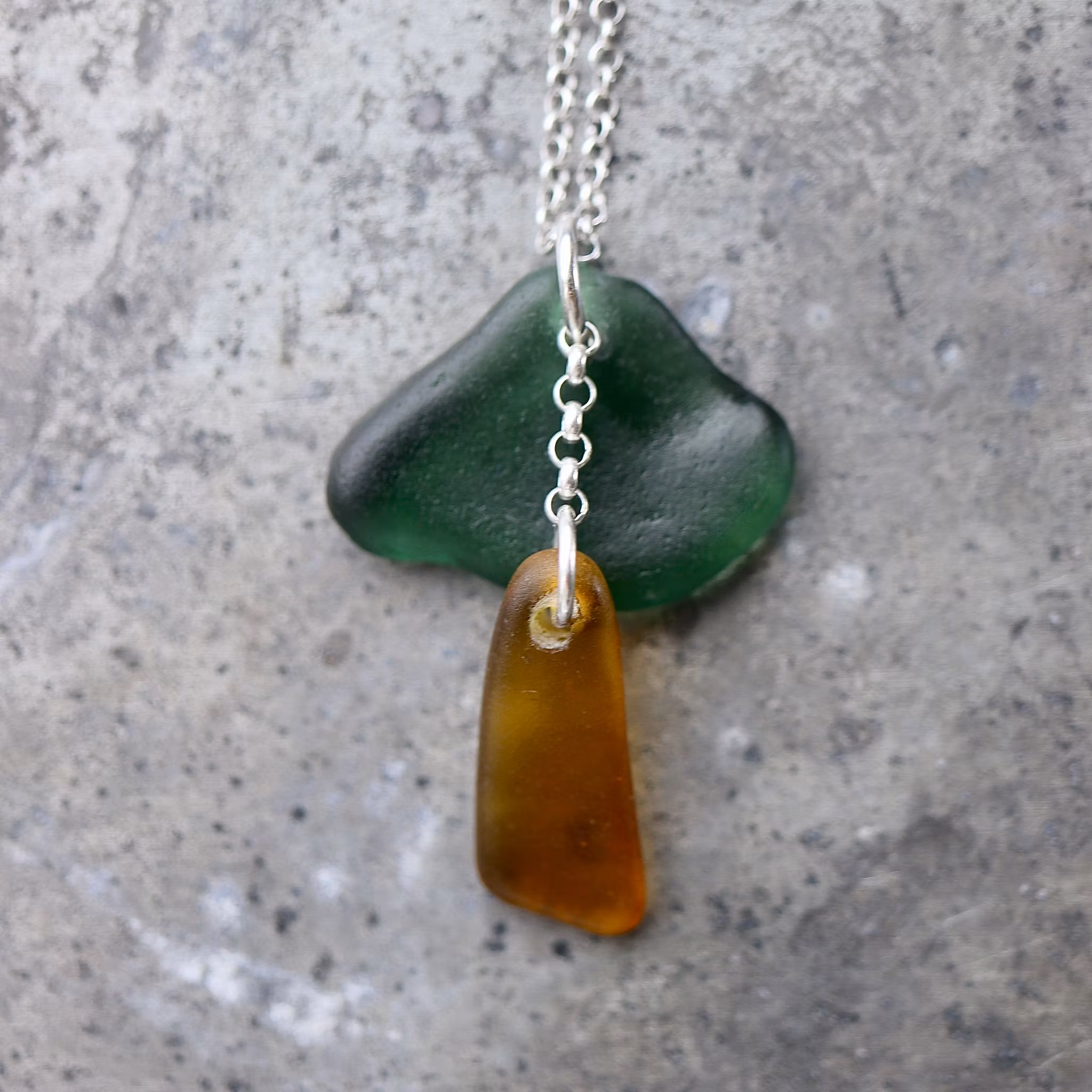 Havsglaset är samlat längs Skånes stränder och helt obearbetat, endast varsamt tvättat och borrat.