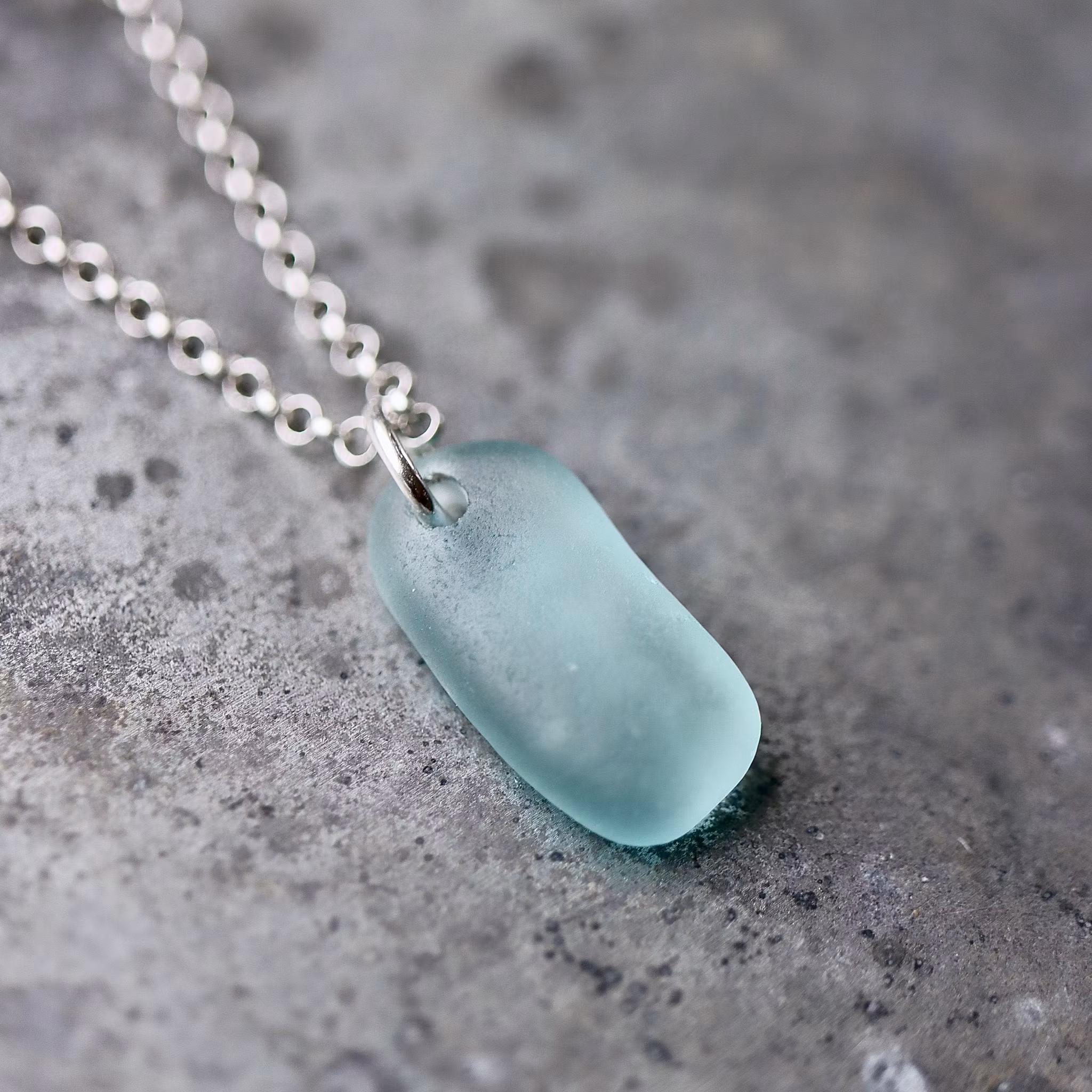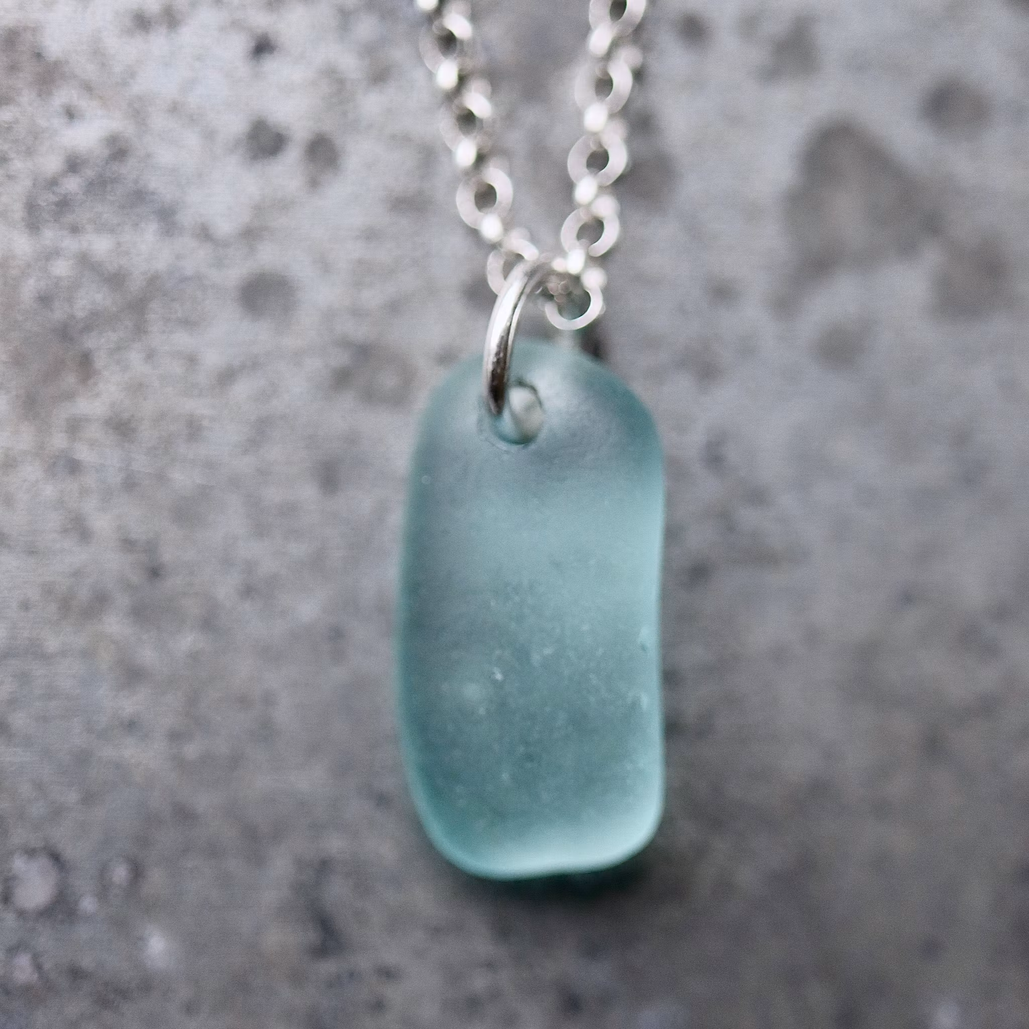 Halskedja av äkta silver, välj mellan 45, 50 och 60 cm, i låset sitter en plexitag "Havsglas" tillverkad i Sverige.