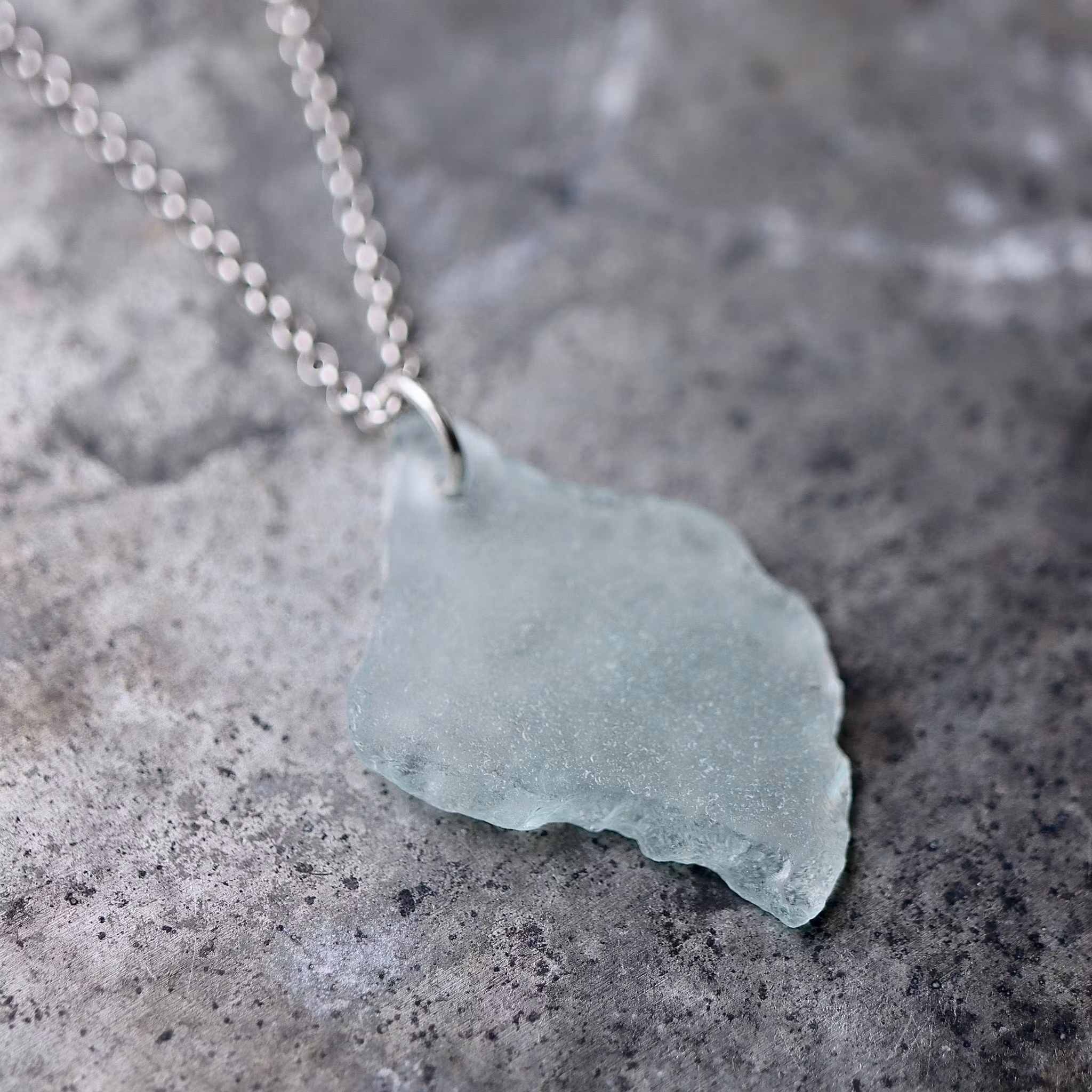 Havsglaset är samlat längs Skånes stränder och helt obearbetat, endast varsamt tvättat och borrat.