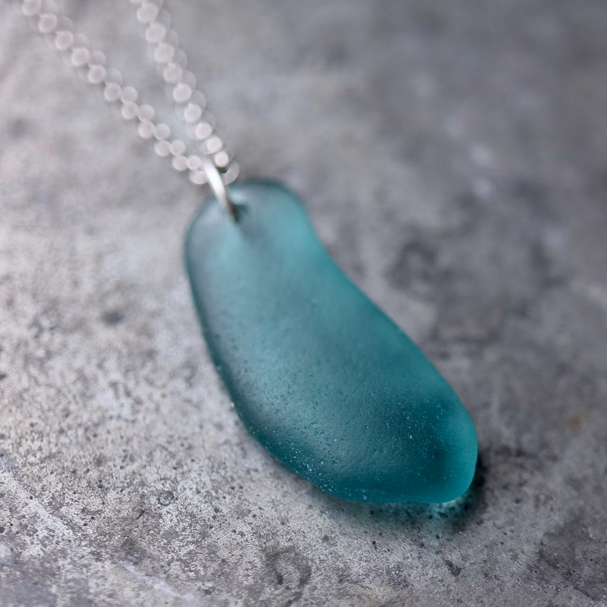 Havsglaset är samlat längs Skånes stränder och helt obearbetat, endast varsamt tvättat och borrat.