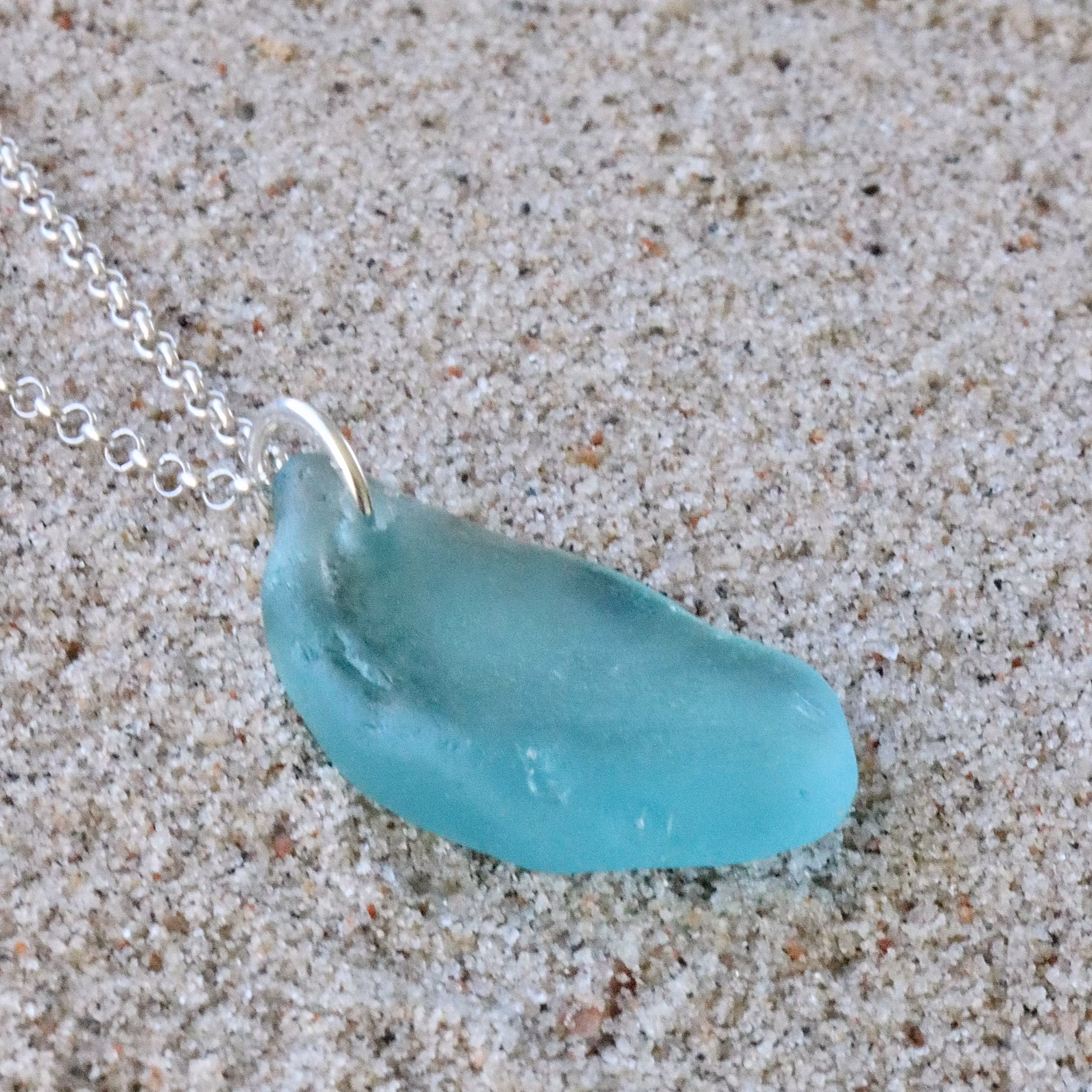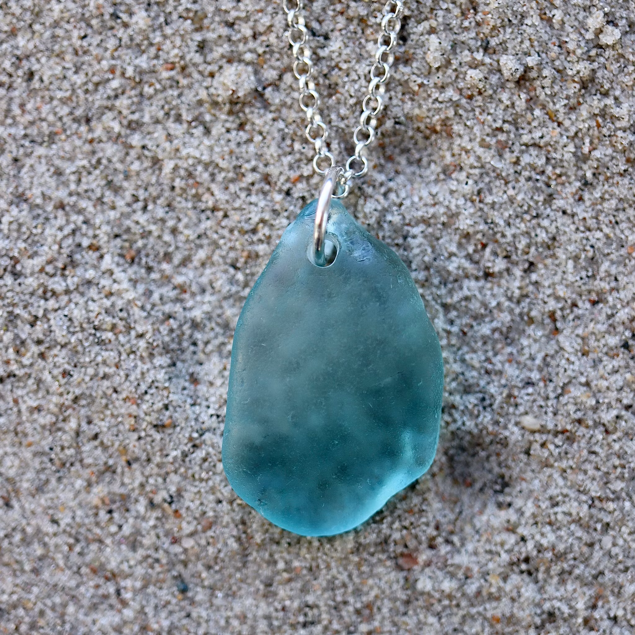 Halskedja av äkta silver, välj mellan 45, 50 och 60 cm, i låset sitter en plexitag "Havsglas" tillverkad i Sverige.
