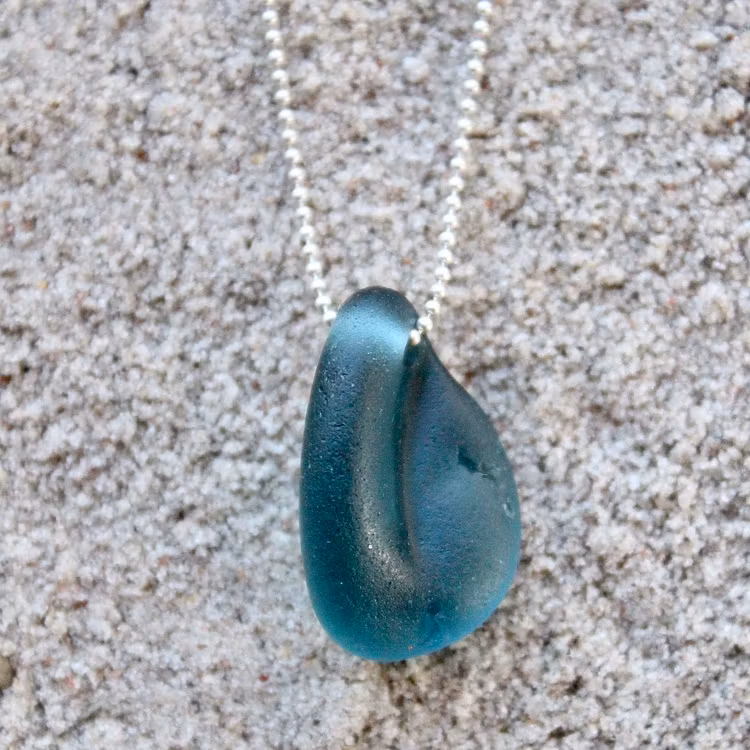 Havsglaset är samlat längs Skånes stränder och helt obearbetat, endast varsamt tvättat och borrat.