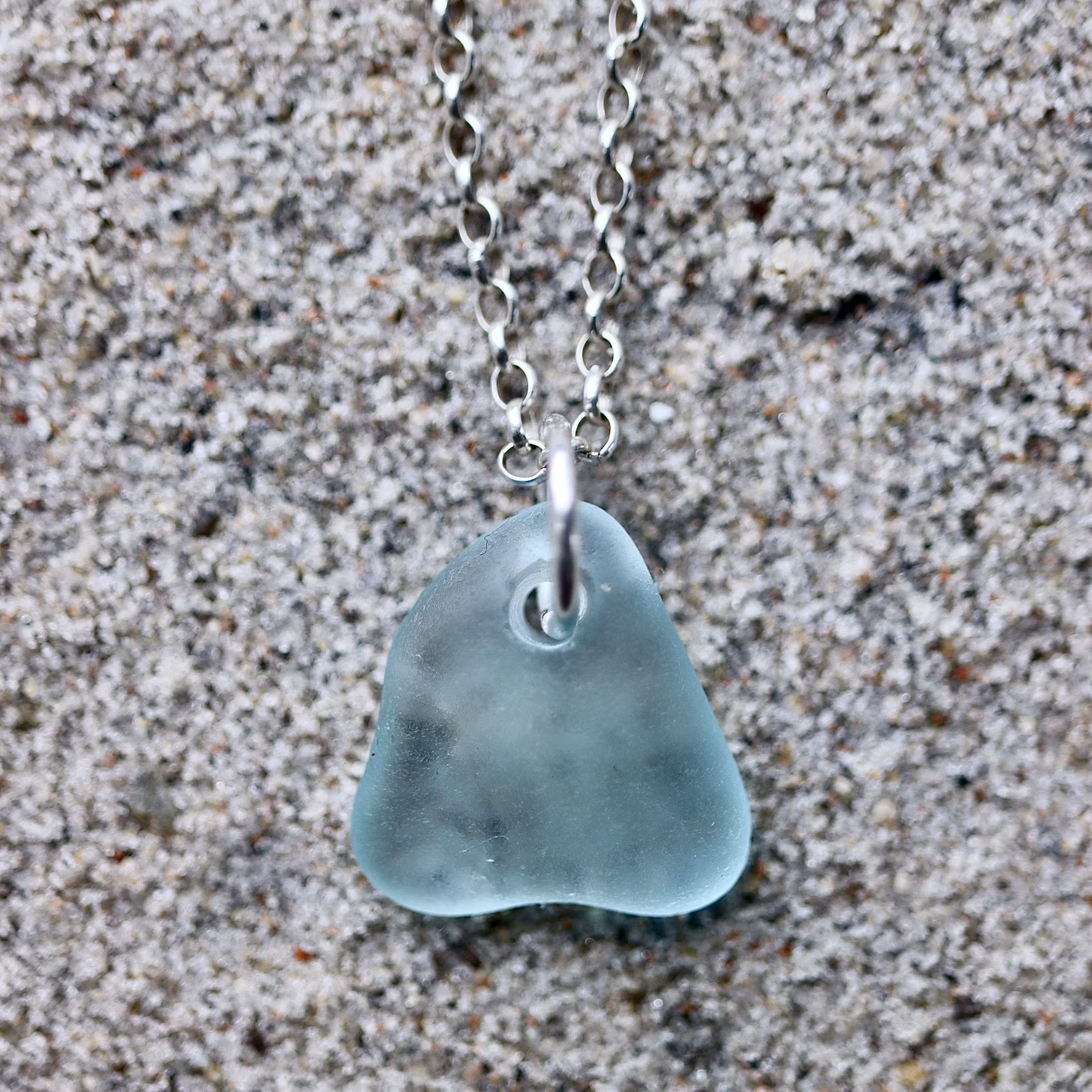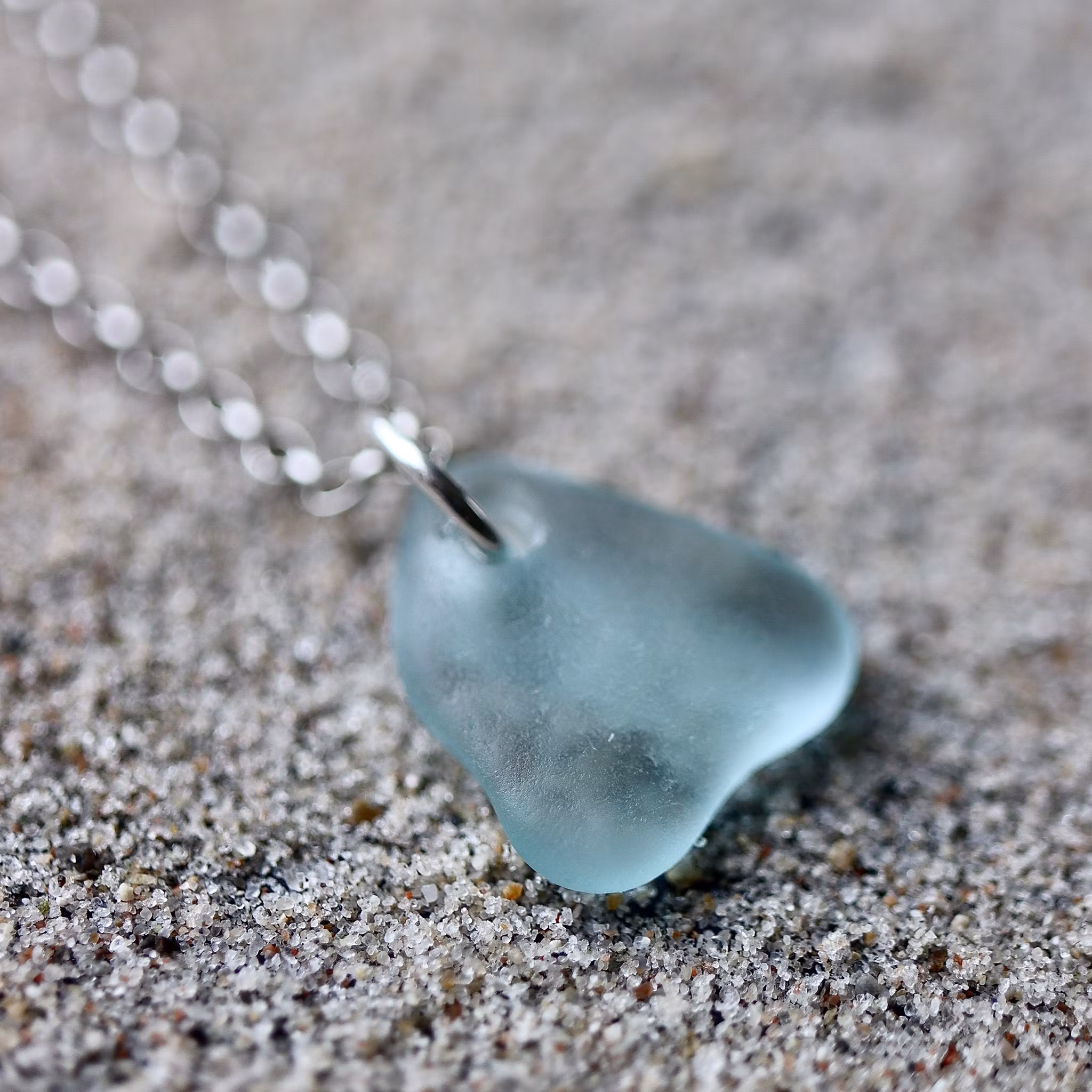 Havsglaset är samlat längs Skånes stränder och helt obearbetat, endast varsamt tvättat och borrat.