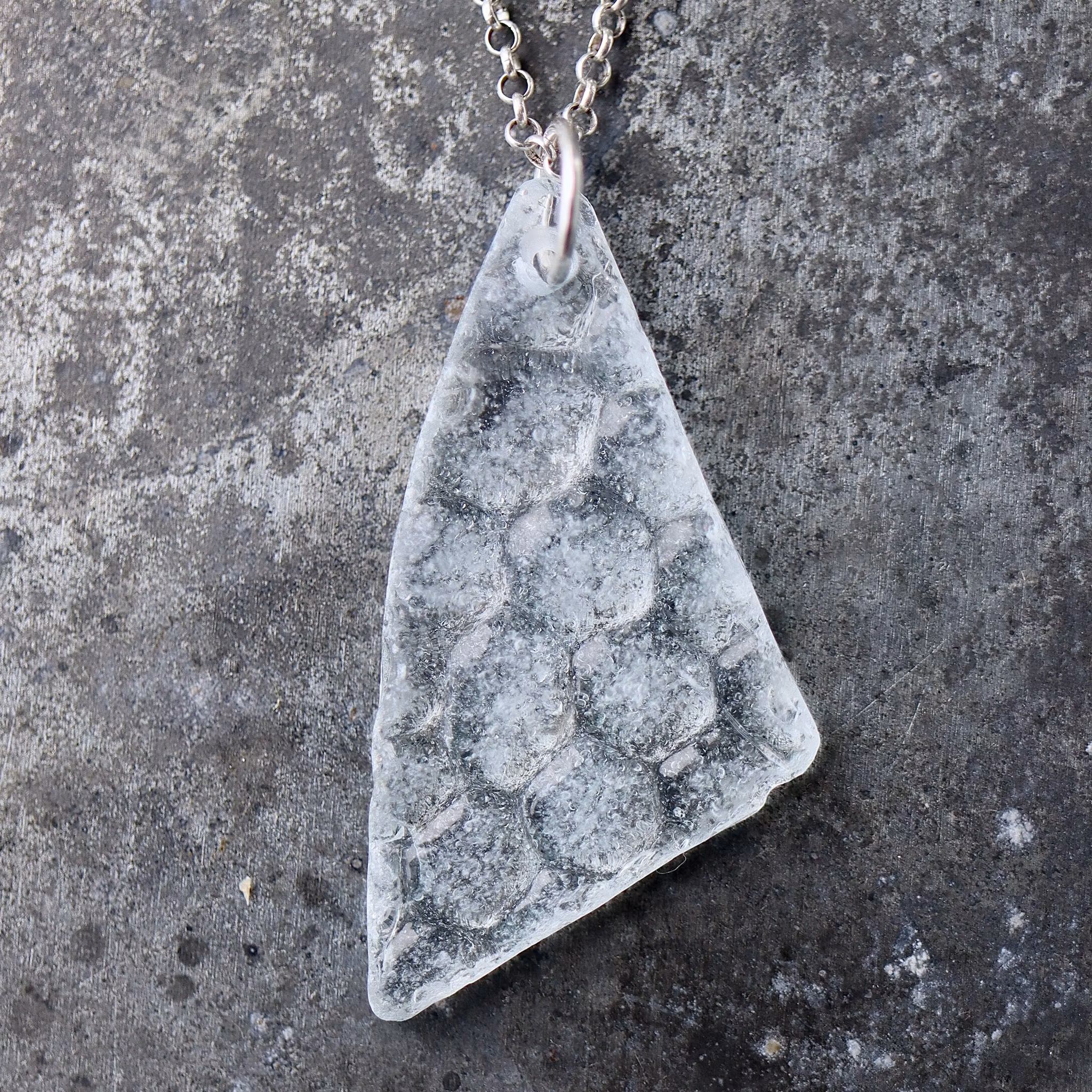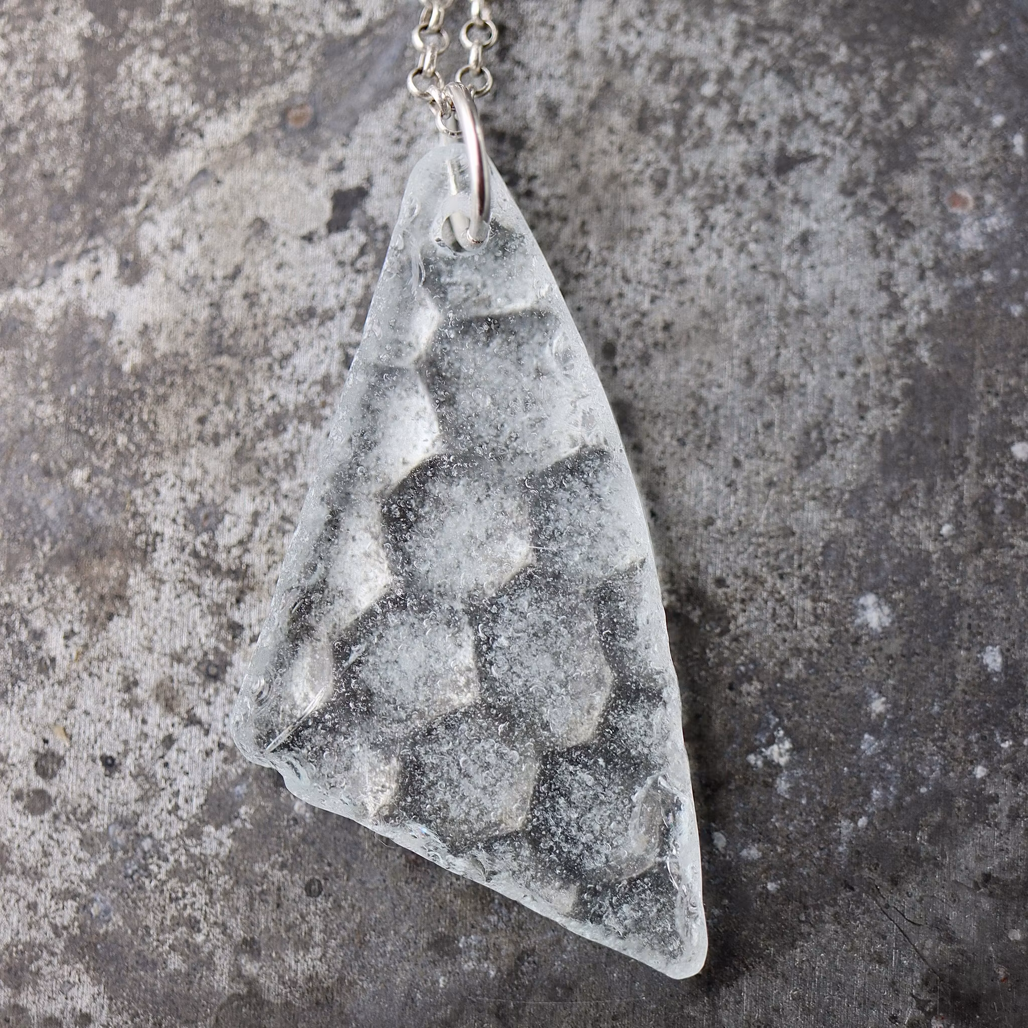 Havsglaset är samlat längs Skånes stränder och helt obearbetat, endast varsamt tvättat och borrat.