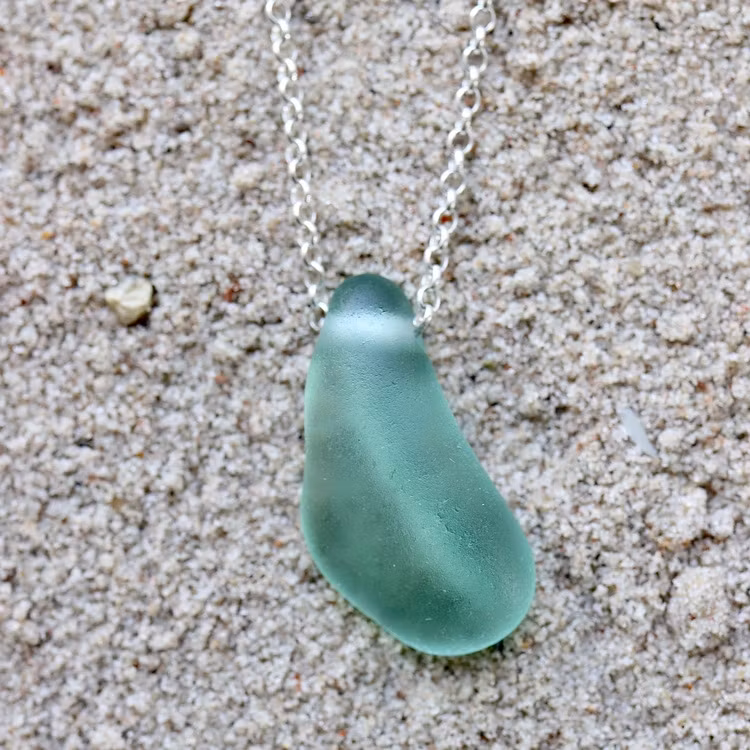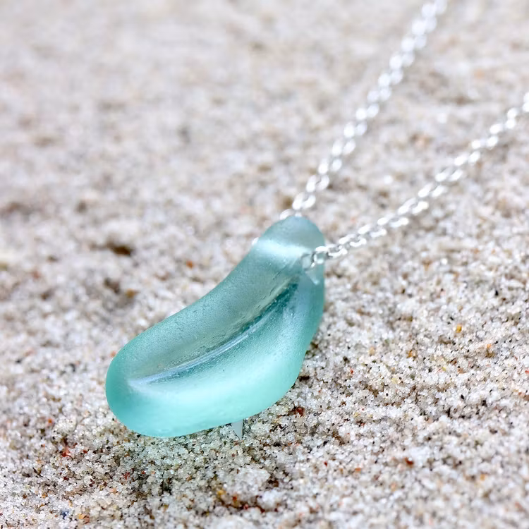 Havsglaset är samlat längs Skånes stränder och helt obearbetat, endast varsamt tvättat och borrat.