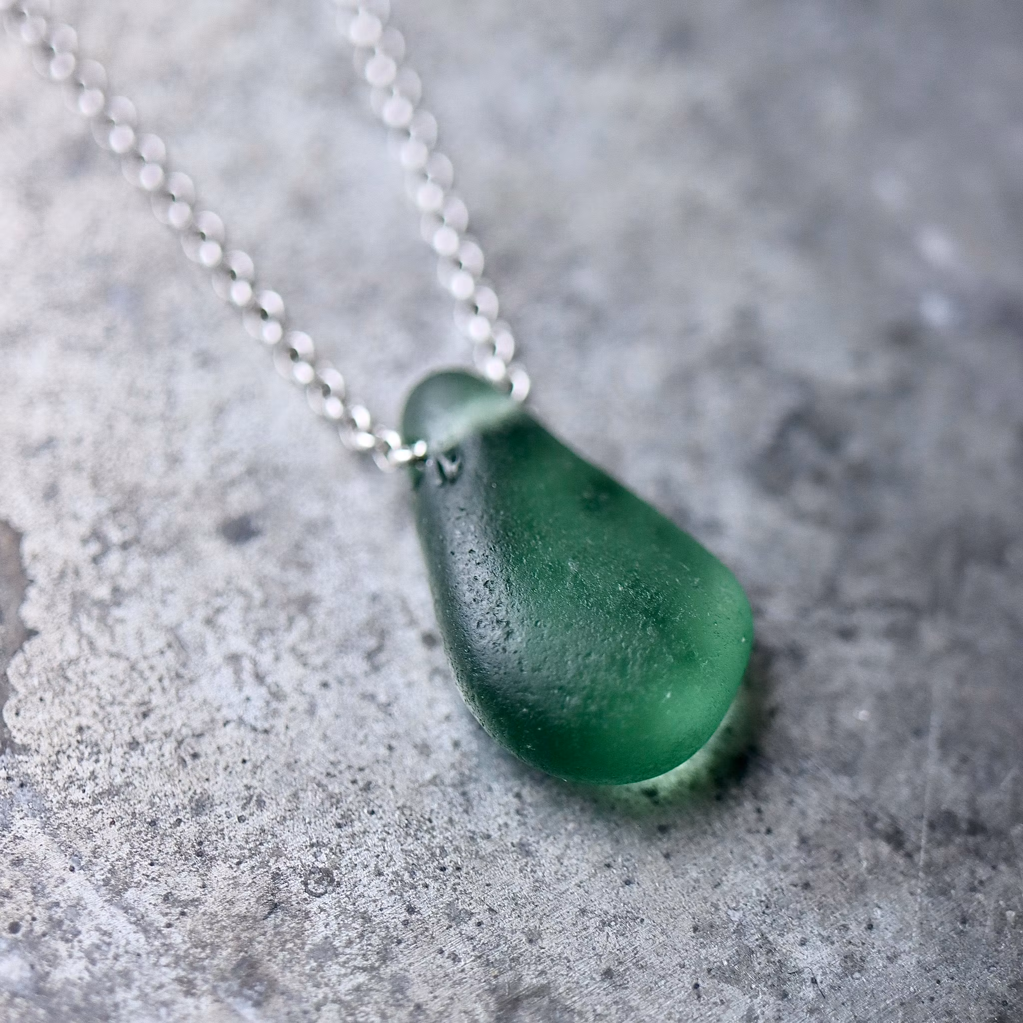 Havsglaset är samlat längs Skånes stränder och helt obearbetat, endast varsamt tvättat och borrat.