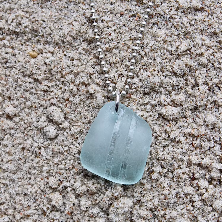 Havsglaset är samlat längs Skånes stränder och helt obearbetat, endast varsamt tvättat och borrat.