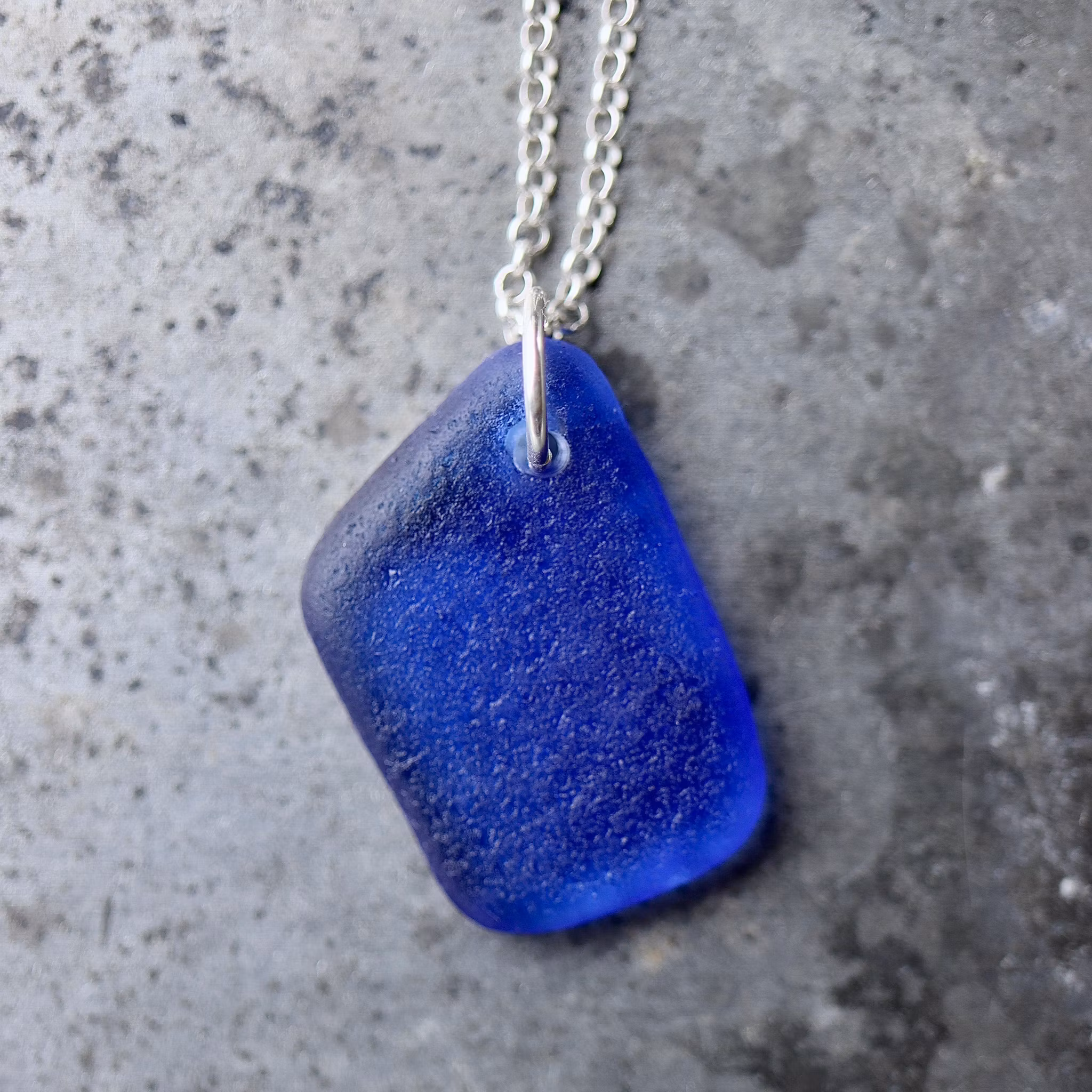 Halskedja av äkta silver, välj mellan 45, 50 och 60 cm, i låset sitter en plexitag "Havsglas" tillverkad i Sverige.