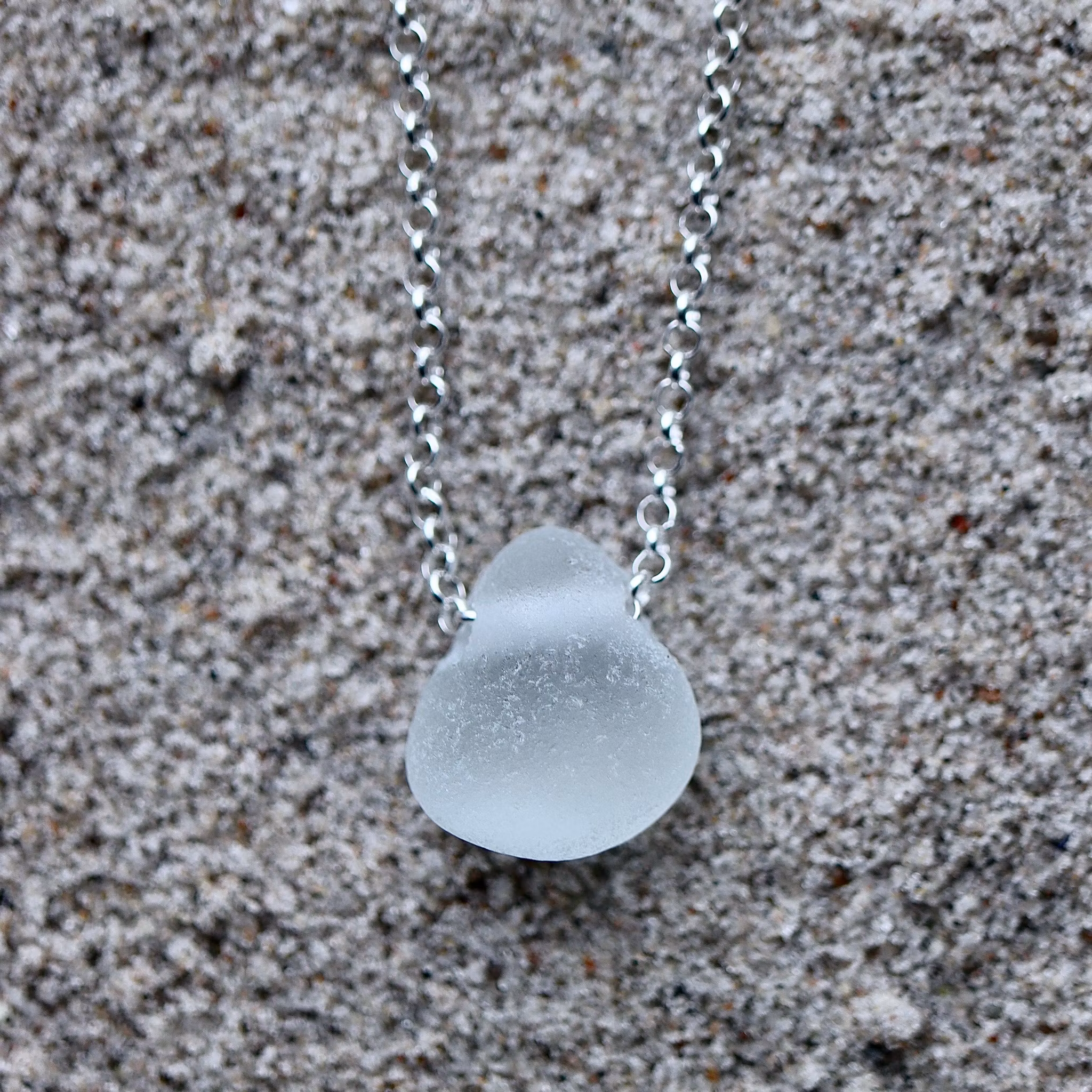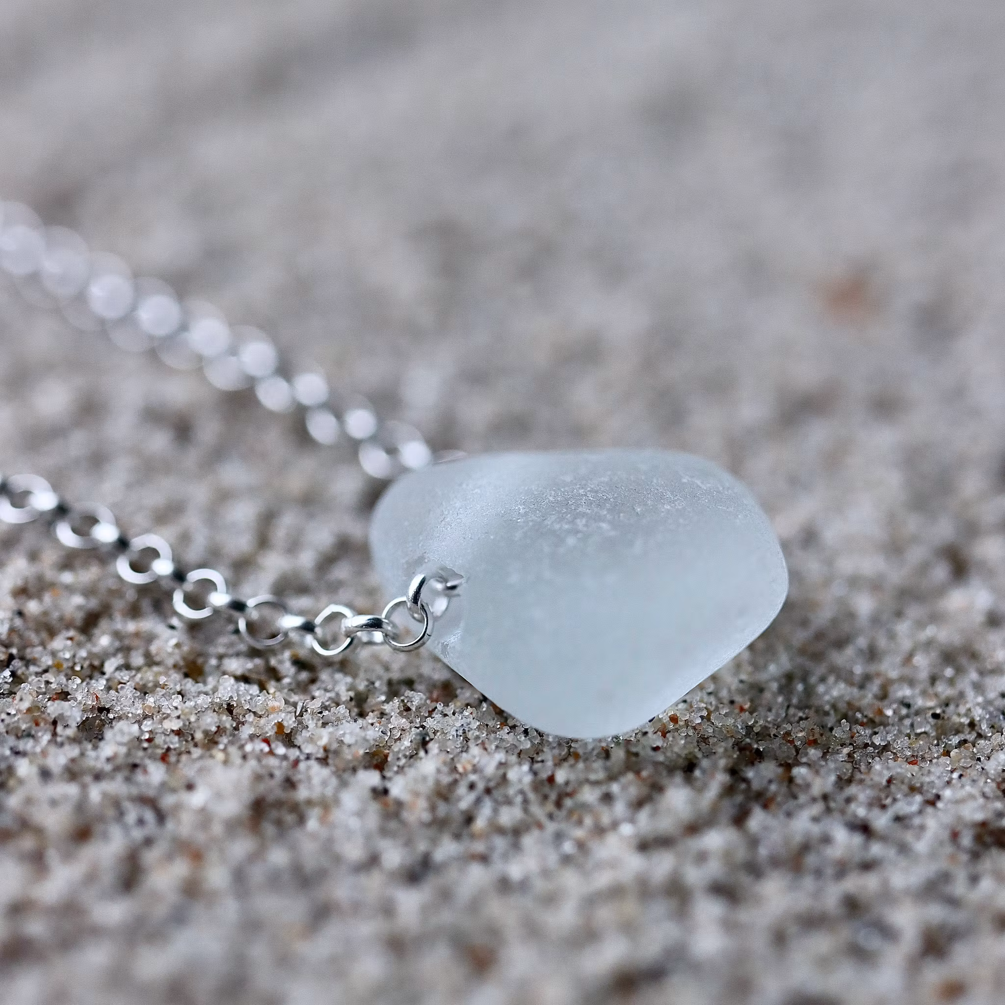 Halskedja av äkta silver, välj mellan 45, 50 och 60 cm, i låset sitter en plexitag "Havsglas" tillverkad i Sverige.