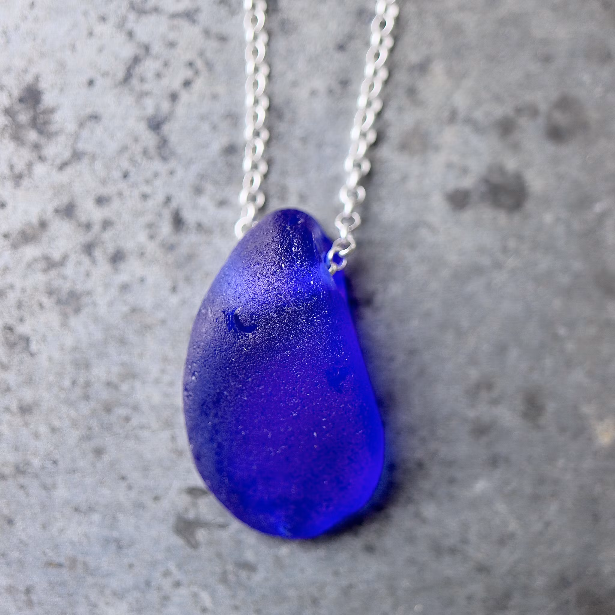 Halskedja av äkta silver, välj mellan 45, 50 och 60 cm, i låset sitter en plexitag "Havsglas" tillverkad i Sverige.