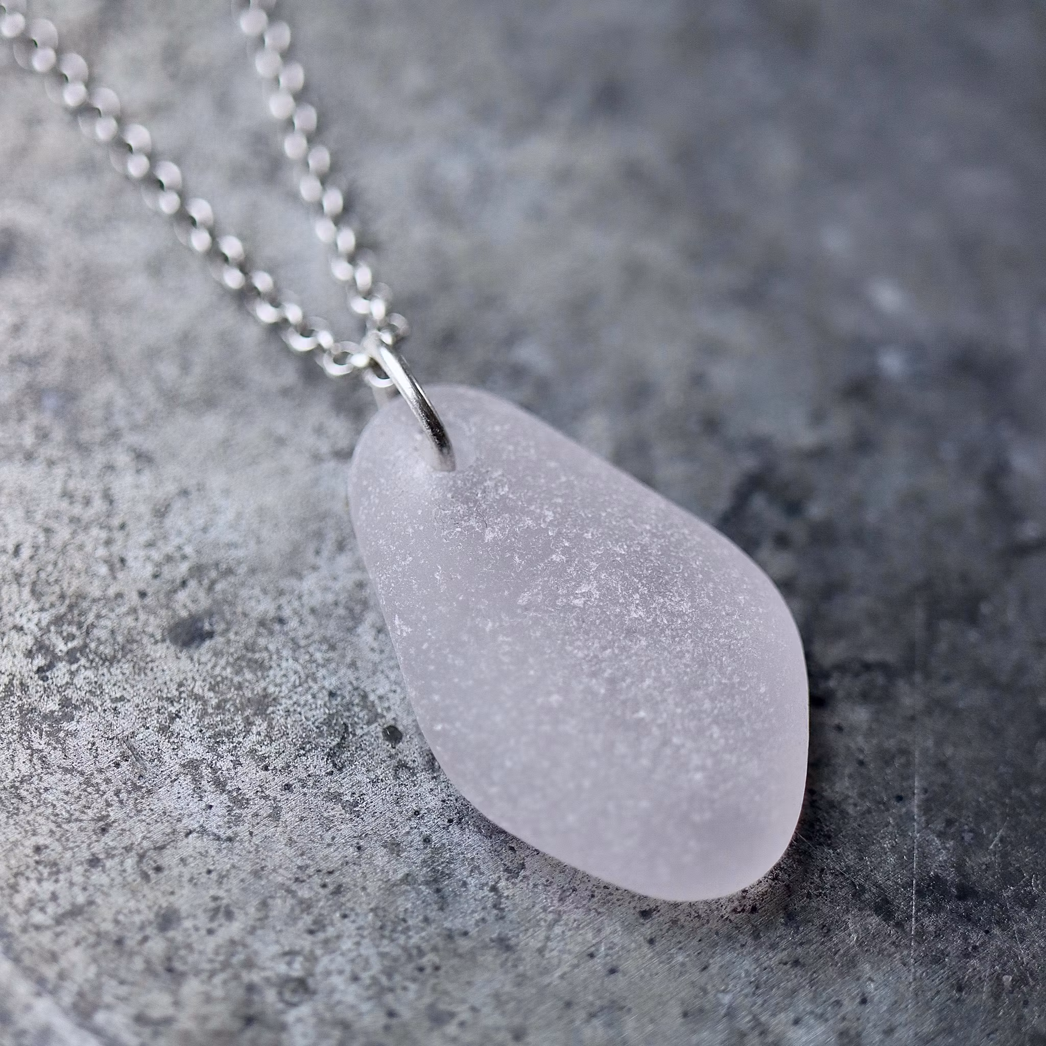Havsglaset är samlat längs Skånes stränder och helt obearbetat, endast varsamt tvättat och borrat.