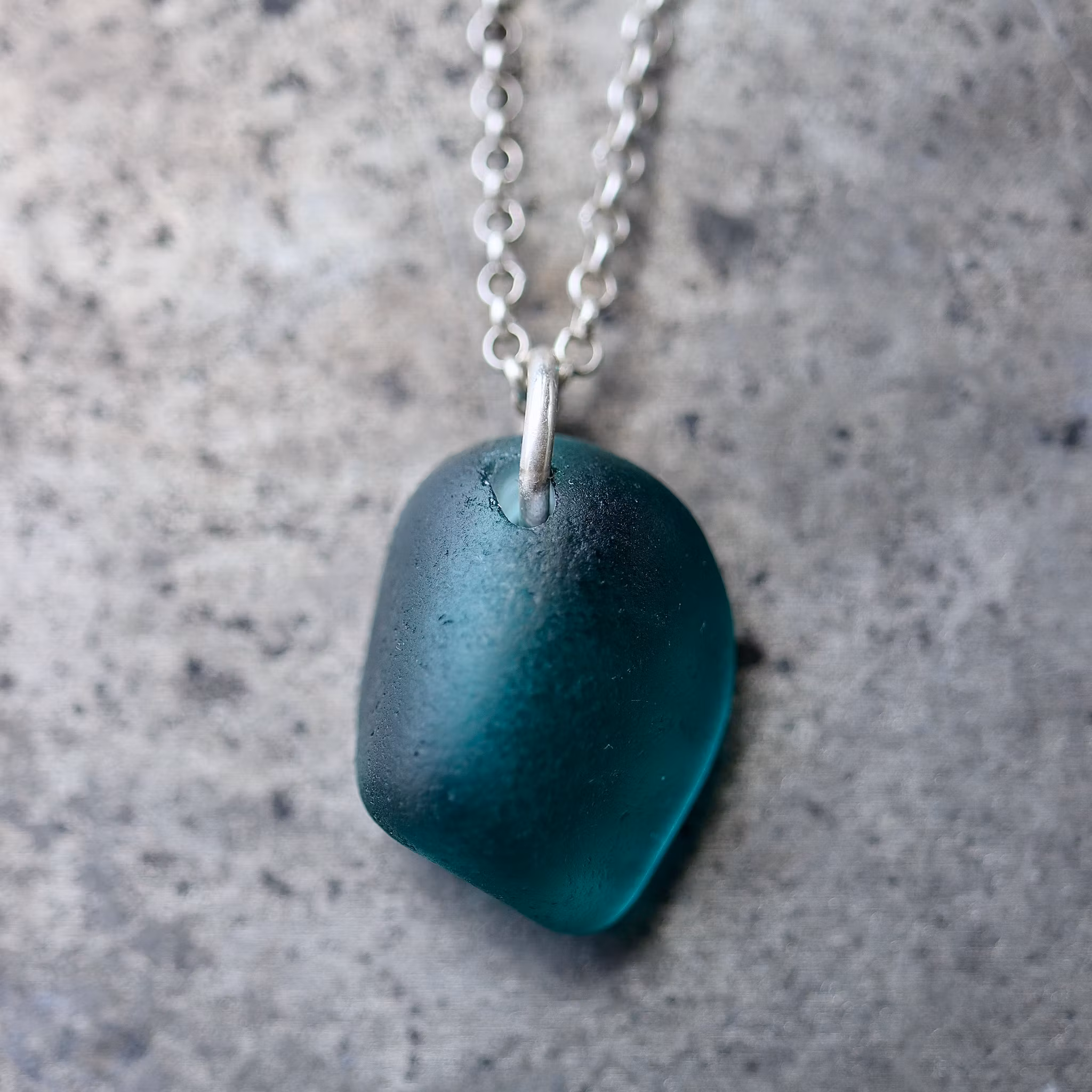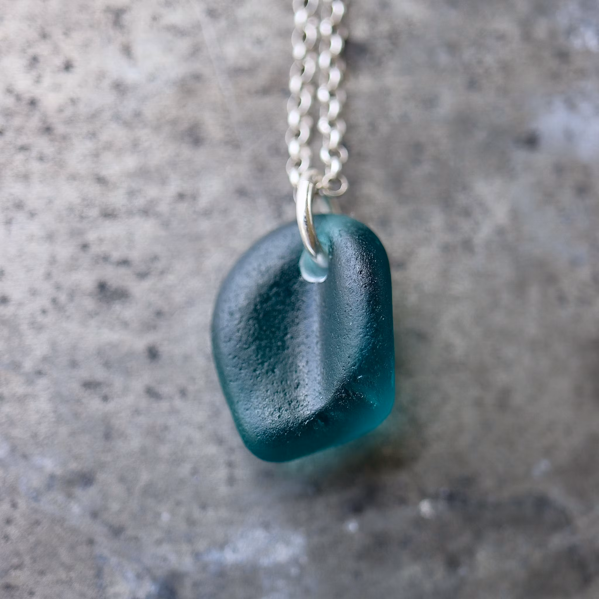 Havsglaset är samlat längs Skånes stränder och helt obearbetat, endast varsamt tvättat och borrat.