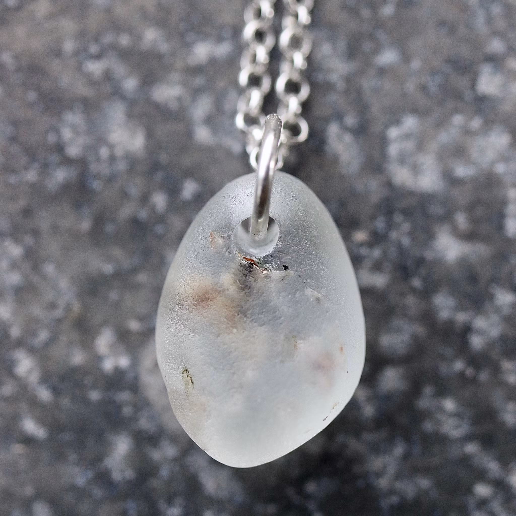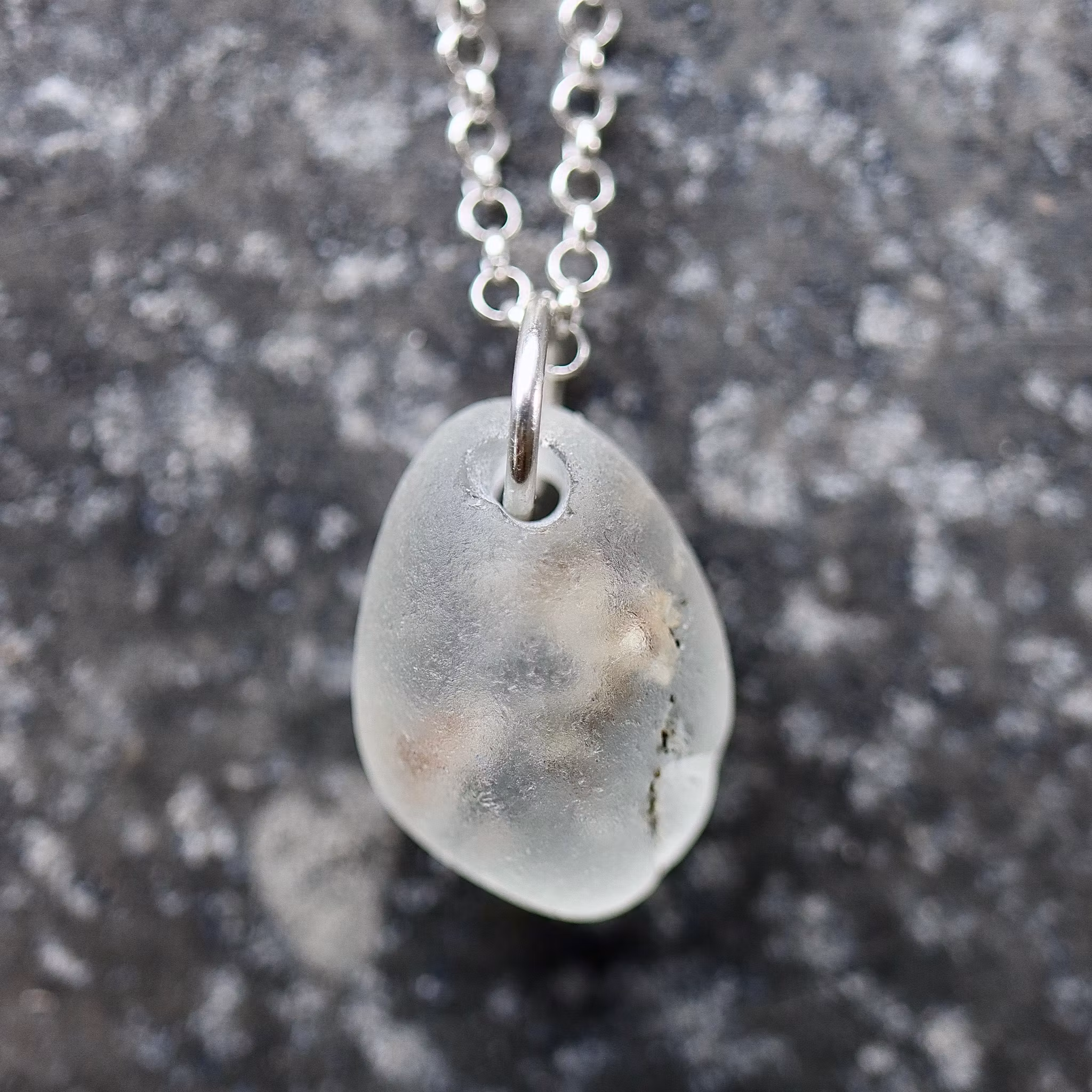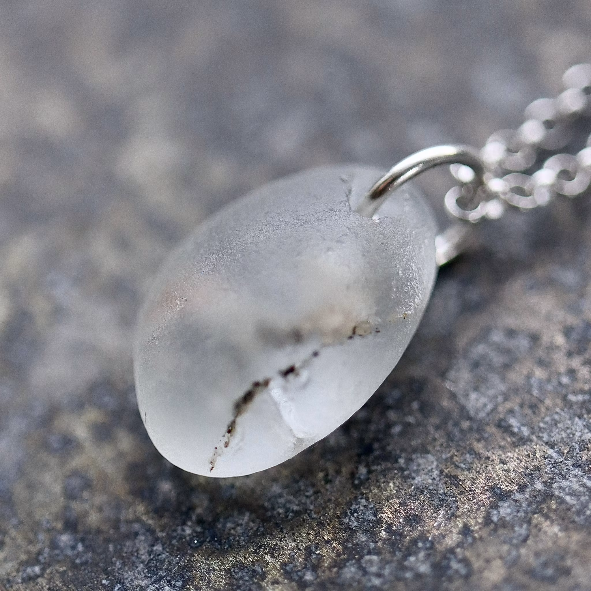 Havsglaset är samlat längs Skånes stränder och helt obearbetat, endast varsamt tvättat och borrat.
