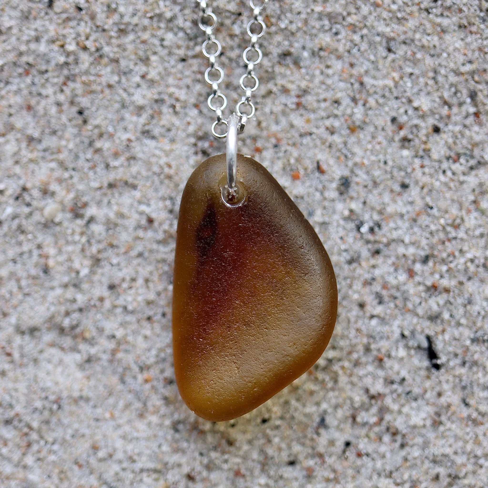 Havsglaset är samlat längs Skånes stränder och helt obearbetat, endast varsamt tvättat och borrat.
