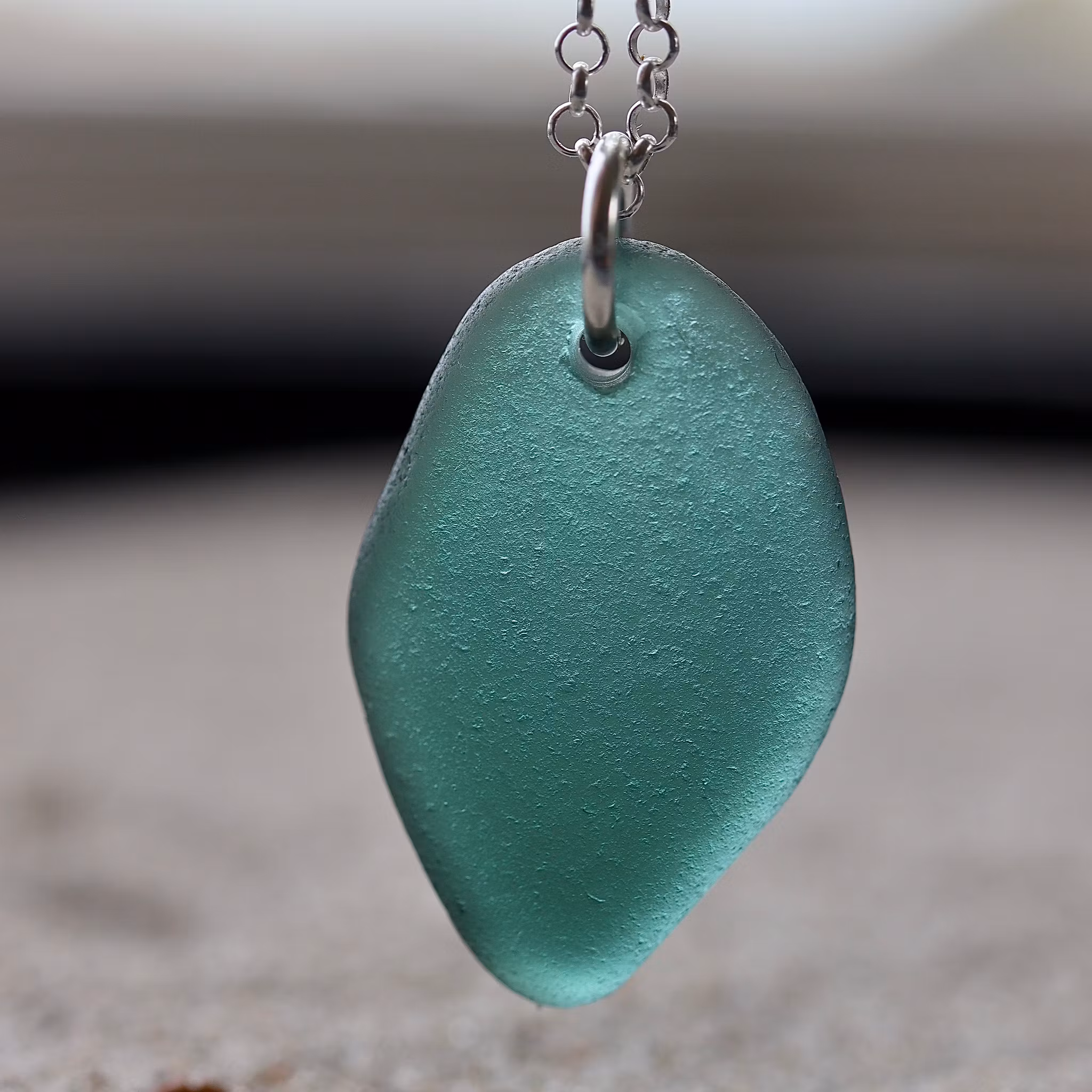 Havsglaset är samlat längs Skånes stränder och helt obearbetat, endast varsamt tvättat och borrat.