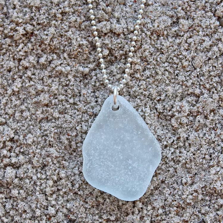 Havsglaset är samlat längs Skånes stränder och helt obearbetat, endast varsamt tvättat och borrat.