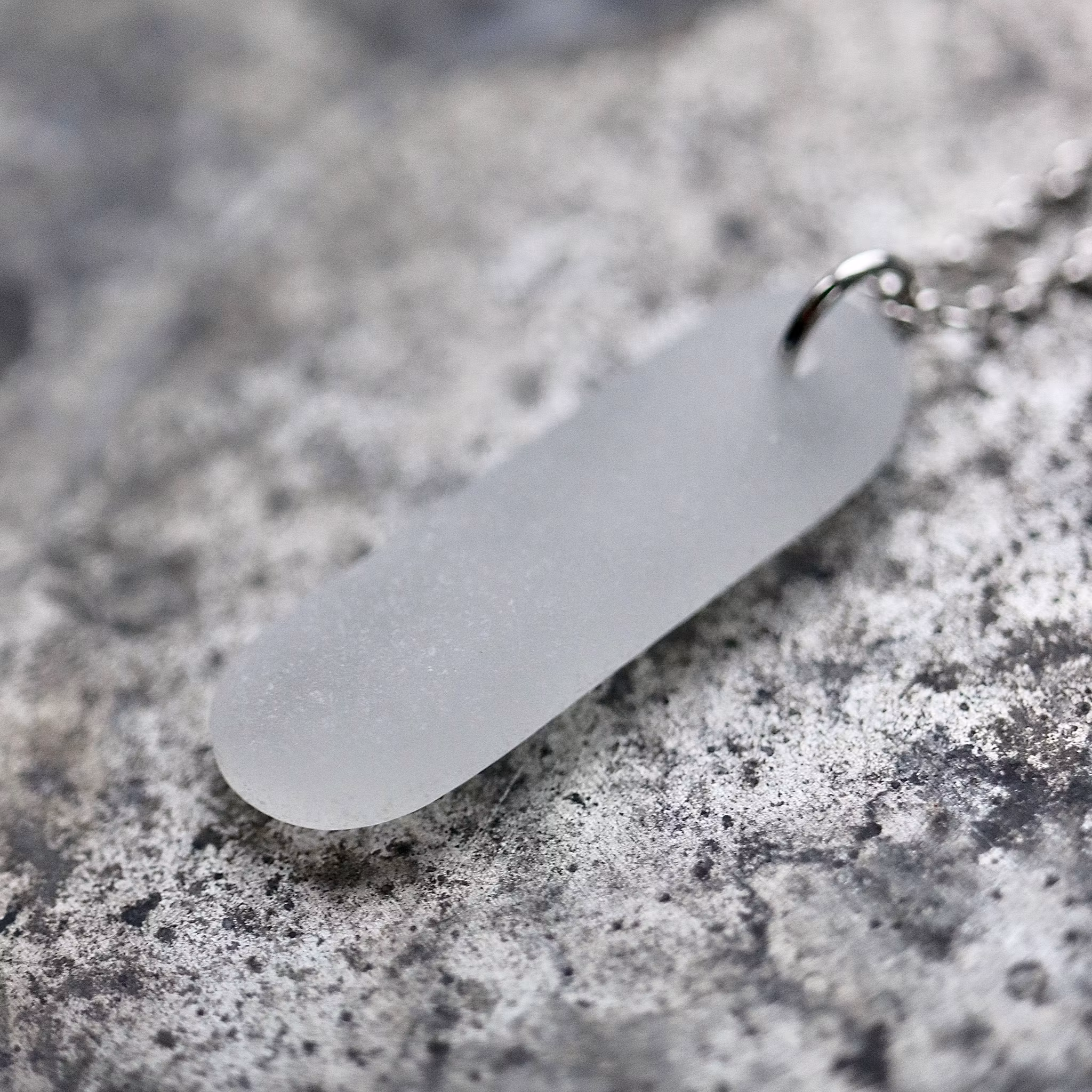 Halskedja av äkta silver, välj mellan 45, 50 och 60 cm, i låset sitter en plexitag "Havsglas" tillverkad i Sverige.