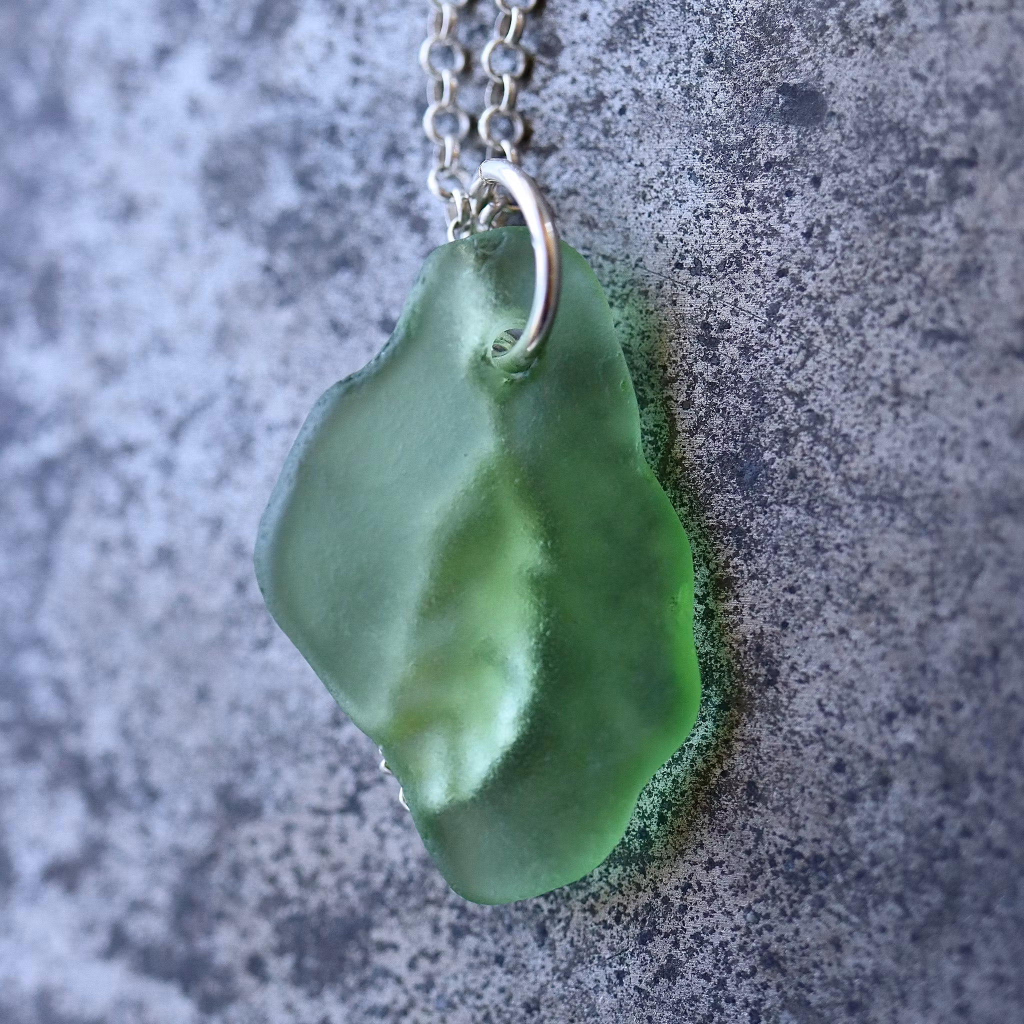 Havsglaset är samlat längs Skånes stränder och helt obearbetat, endast varsamt tvättat och borrat.