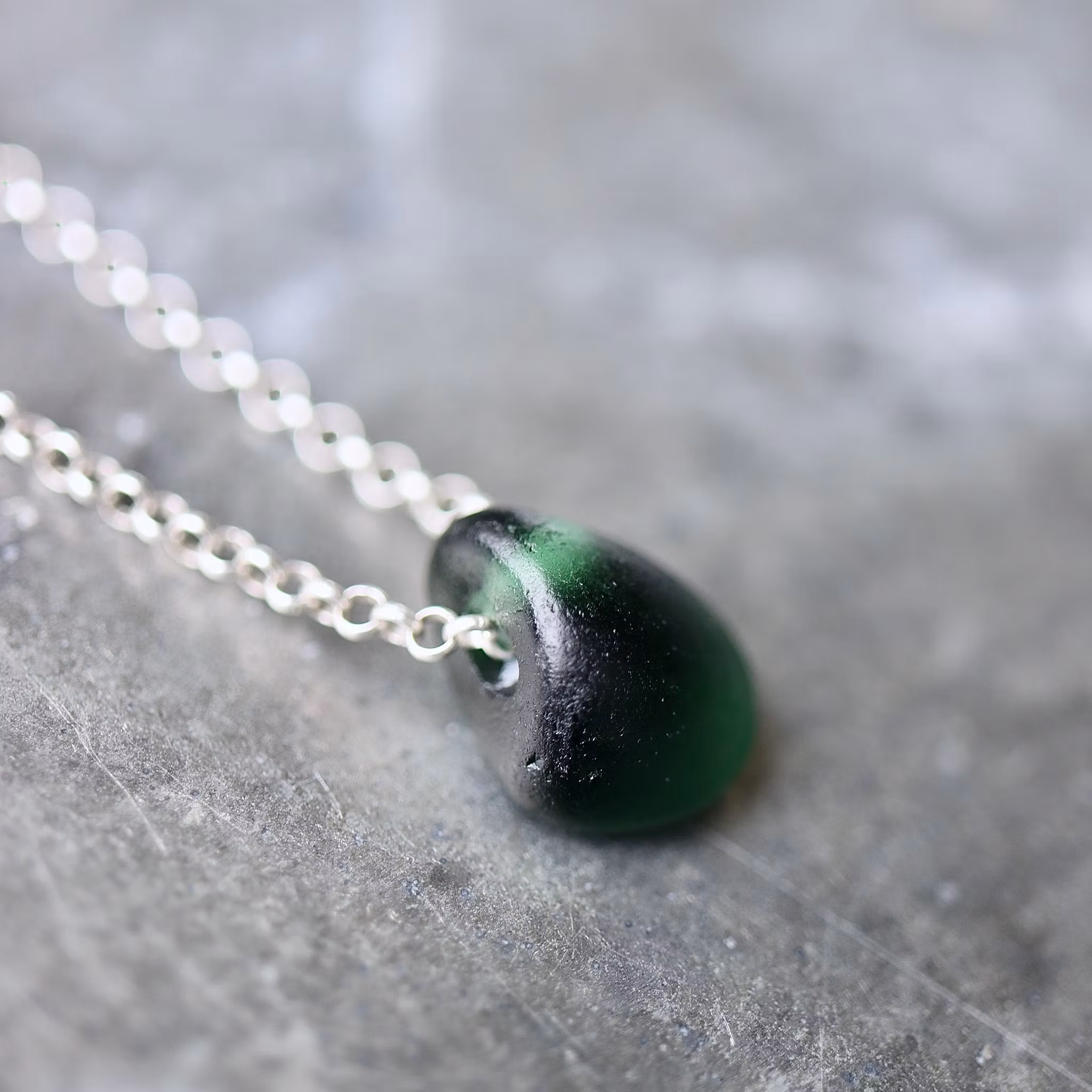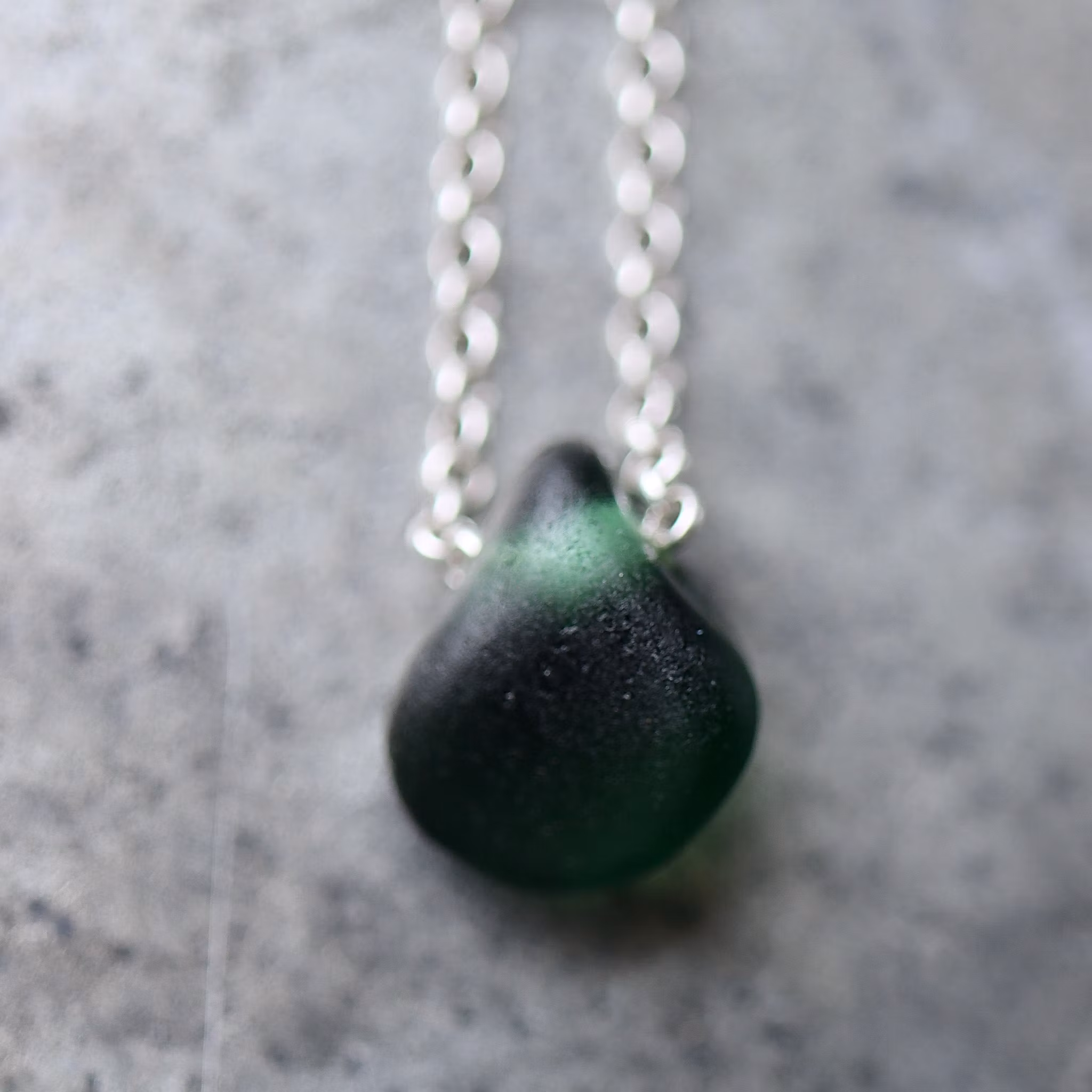 Havsglaset är samlat längs Skånes stränder och helt obearbetat, endast varsamt tvättat och borrat.