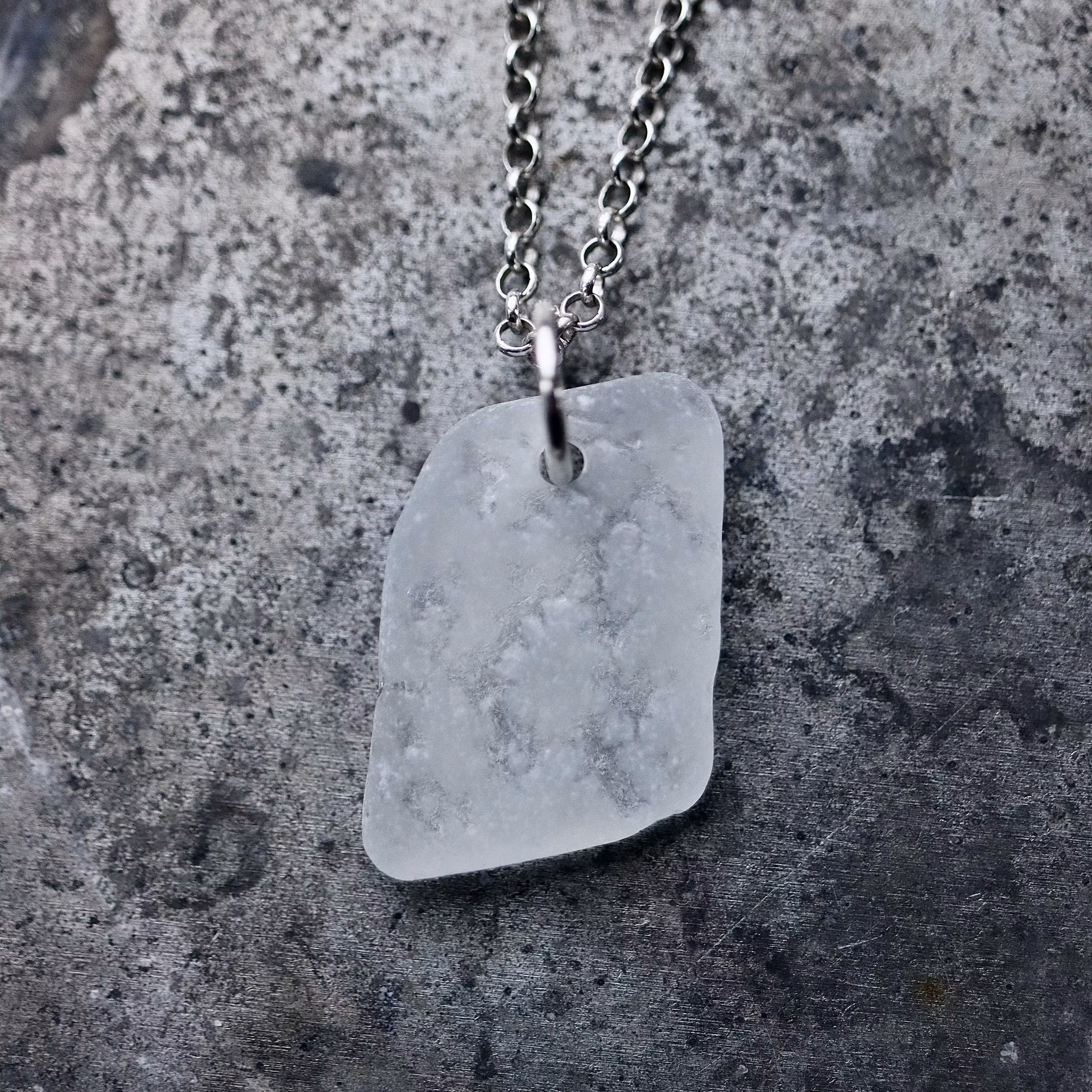 Havsglaset är samlat längs Skånes stränder och helt obearbetat, endast varsamt tvättat och borrat.