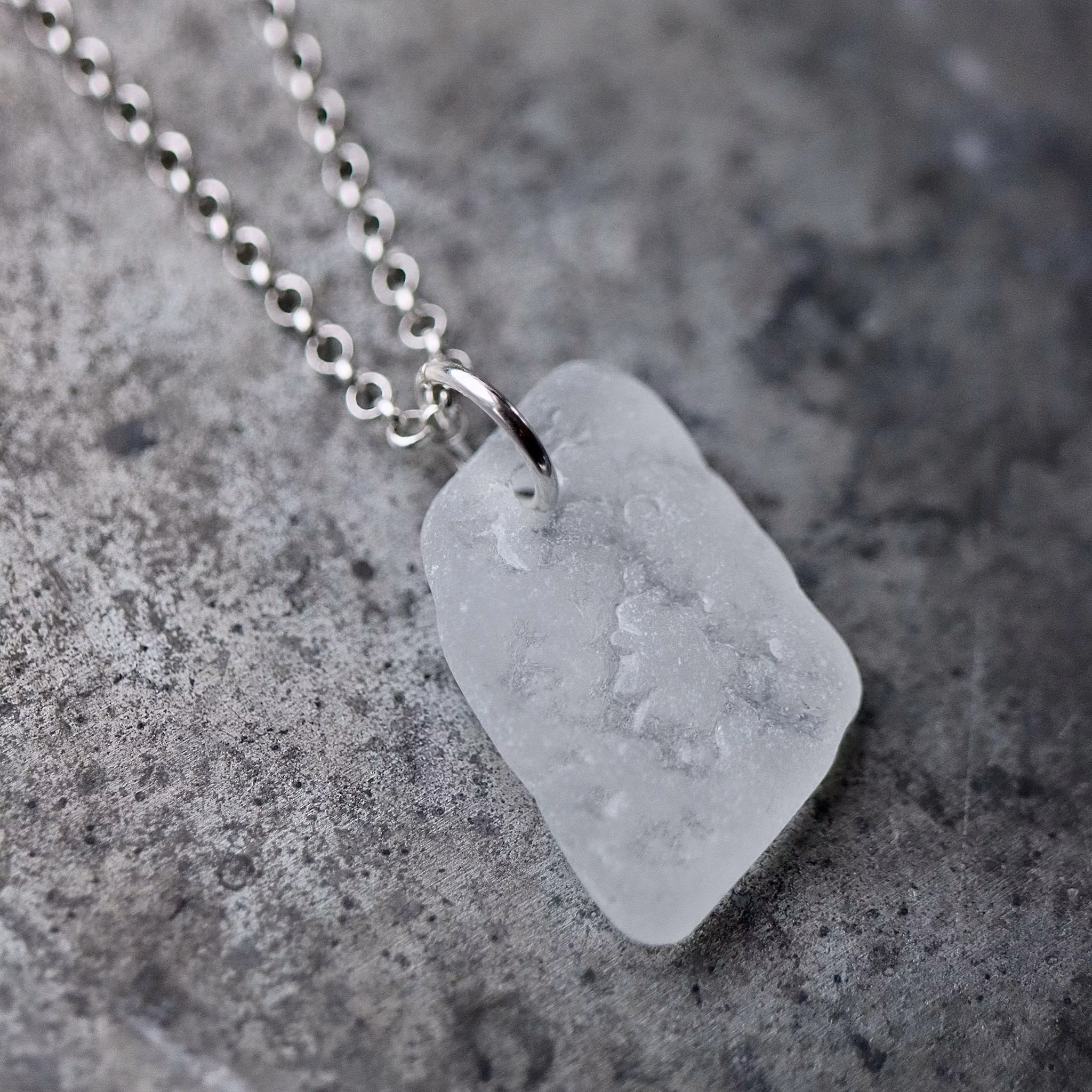 Halskedja av äkta silver, välj mellan 45, 50 och 60 cm, i låset sitter en plexitag "Havsglas" tillverkad i Sverige.