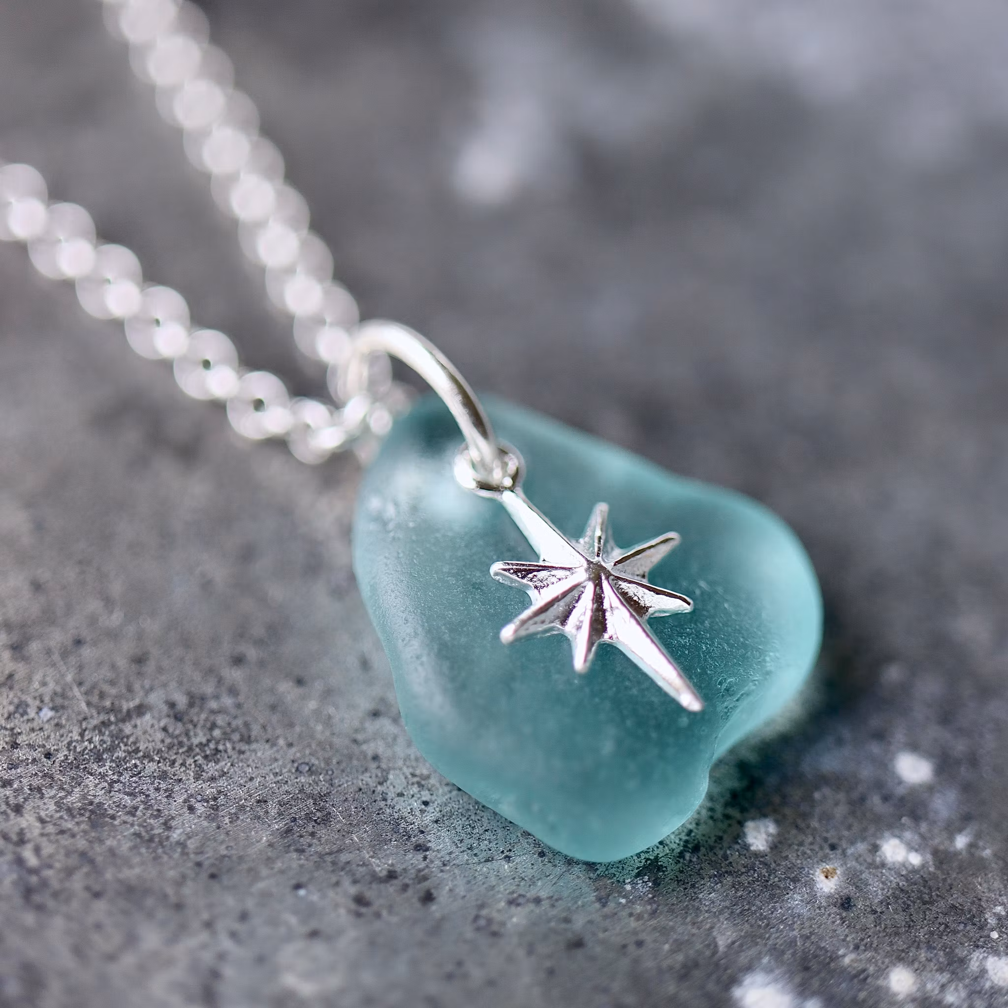Havsglaset är samlat längs Skånes stränder och helt obearbetat, endast varsamt tvättat och borrat.