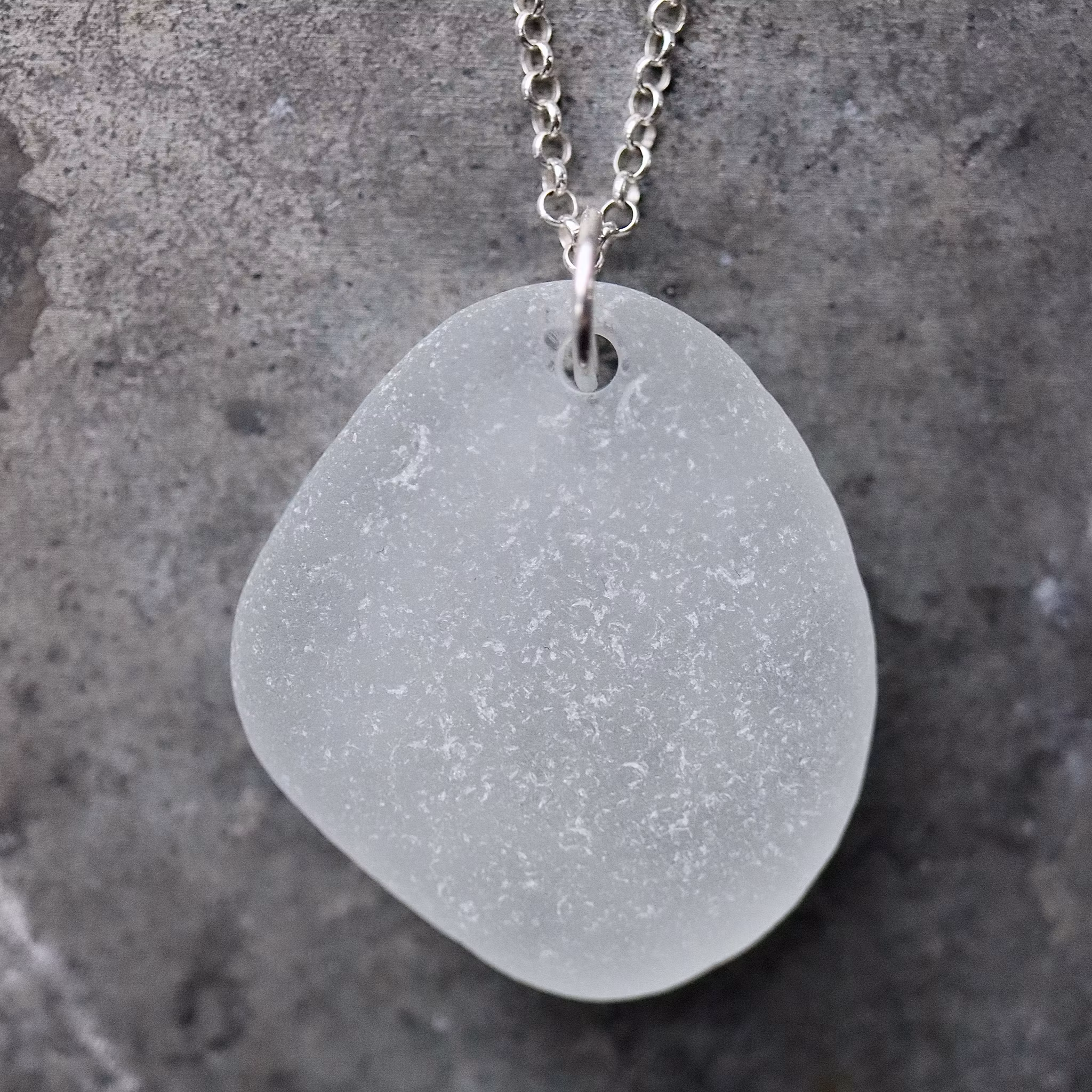 Havsglaset är samlat längs Skånes stränder och helt obearbetat, endast varsamt tvättat och borrat.