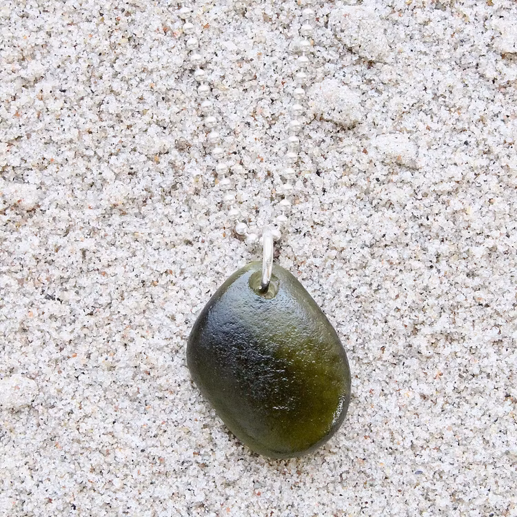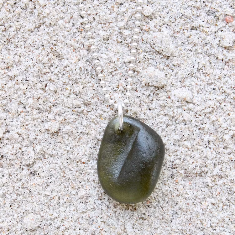 Havsglaset är samlat längs Skånes stränder och helt obearbetat, endast varsamt tvättat och borrat.
