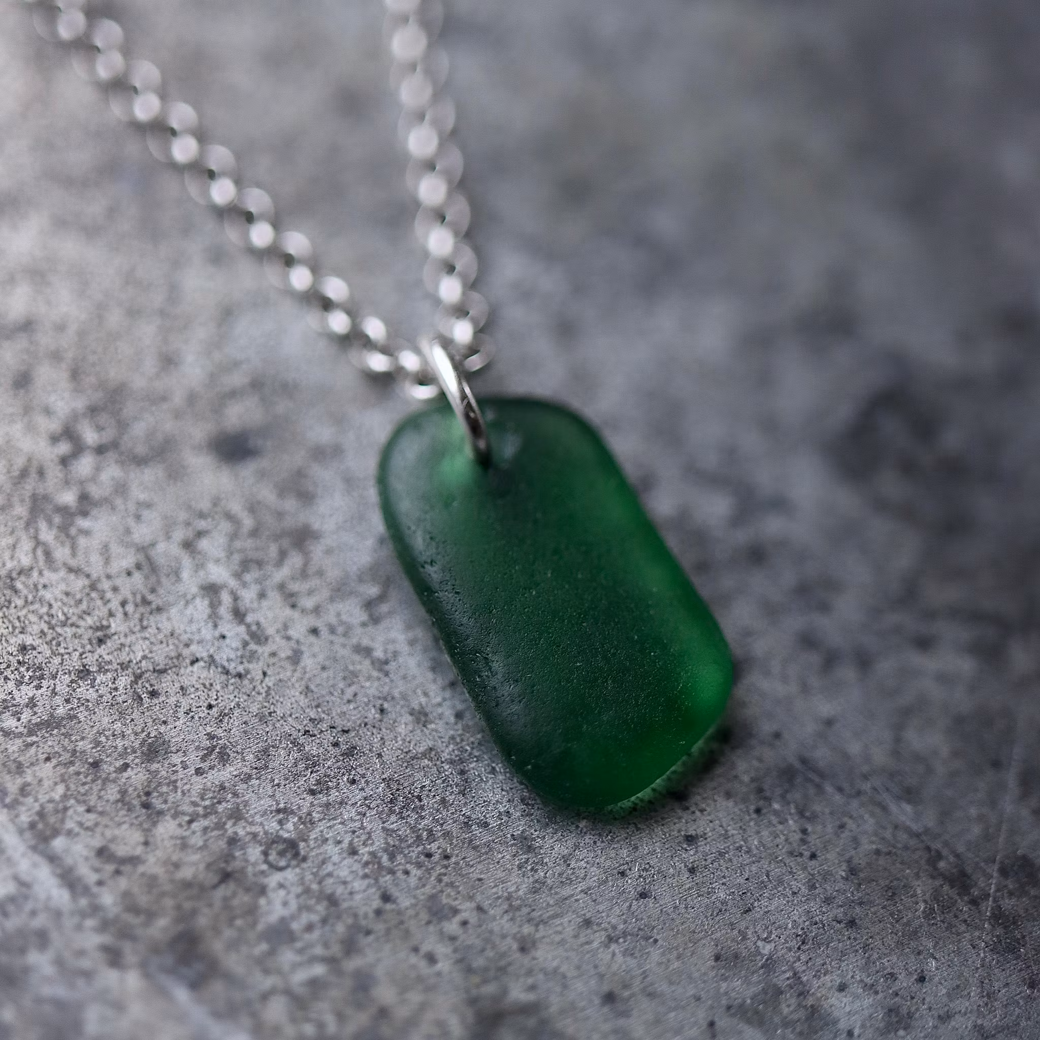 Halskedja av äkta silver, välj mellan 45, 50 och 60 cm, i låset sitter en plexitag "Havsglas" tillverkad i Sverige.