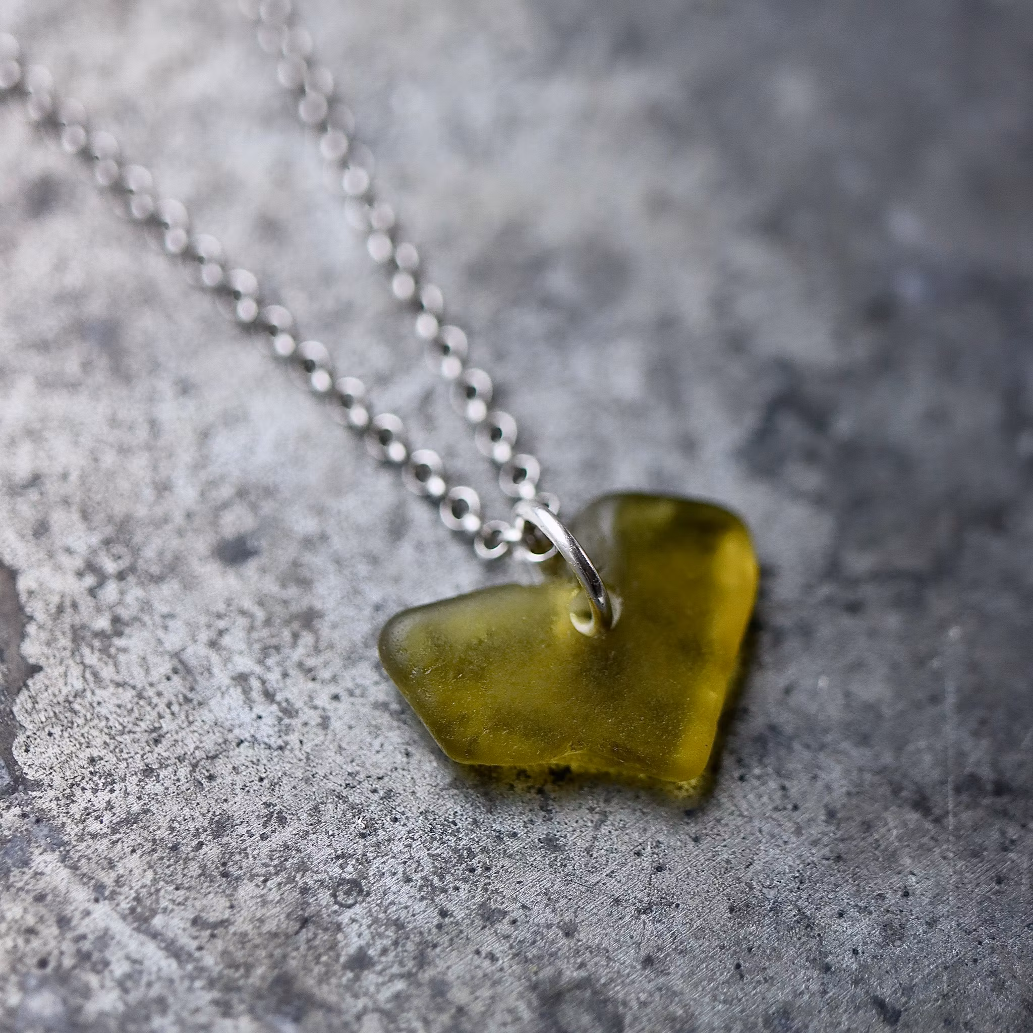 Havsglaset är samlat längs Skånes stränder och helt obearbetat, endast varsamt tvättat och borrat.