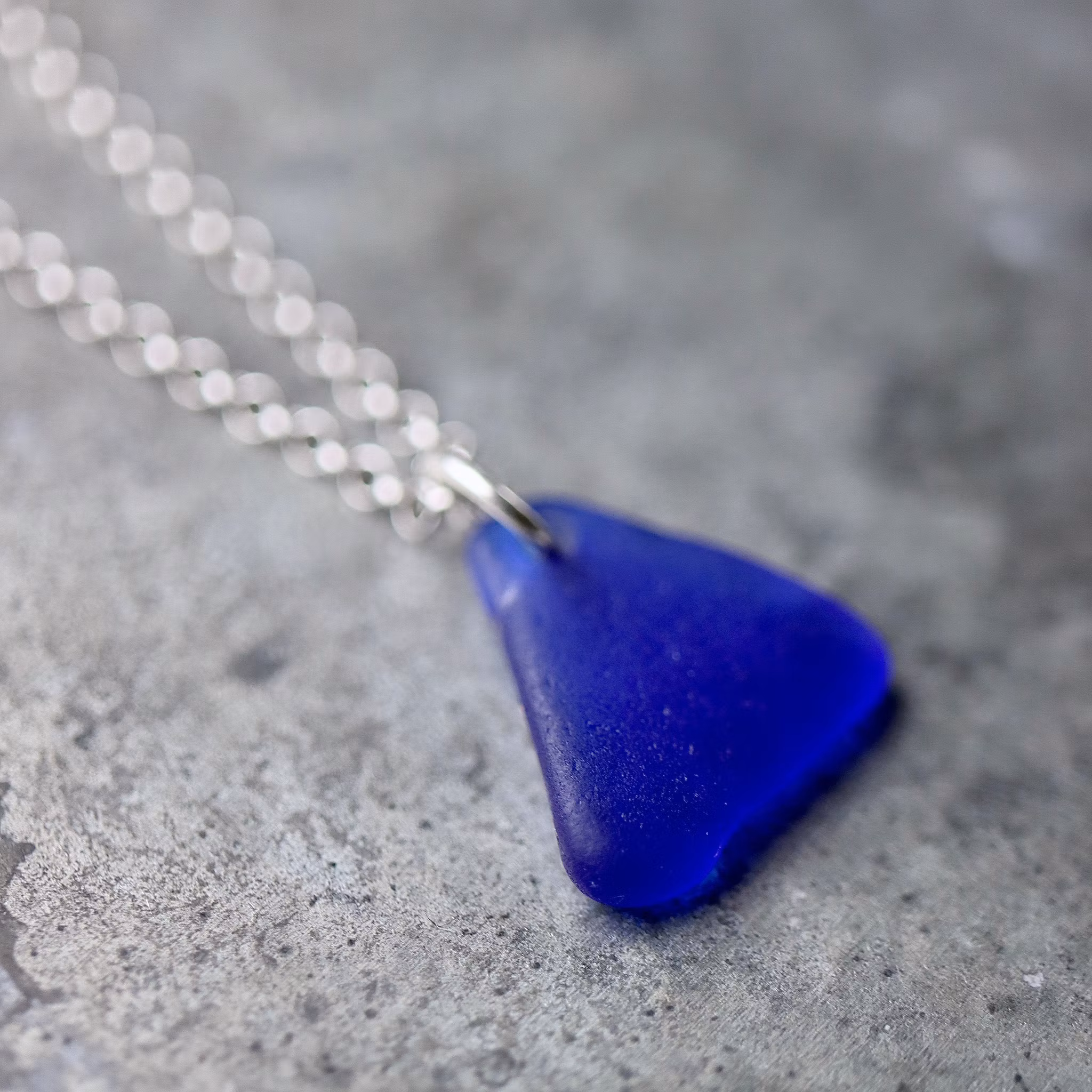 Halskedja av äkta silver, välj mellan 45, 50 och 60 cm, i låset sitter en plexitag "Havsglas" tillverkad i Sverige.