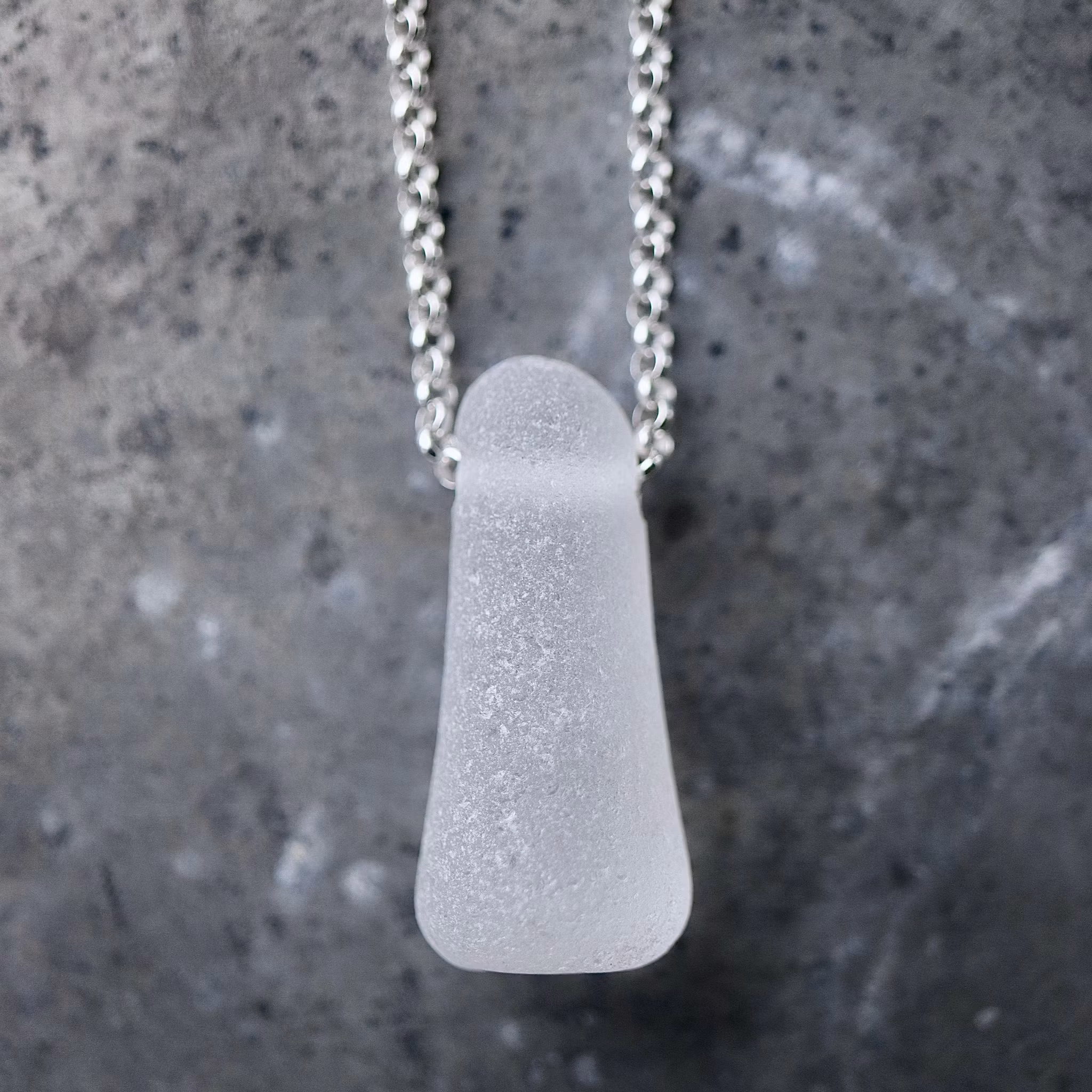 Havsglaset är samlat längs Skånes stränder och helt obearbetat, endast varsamt tvättat och borrat.