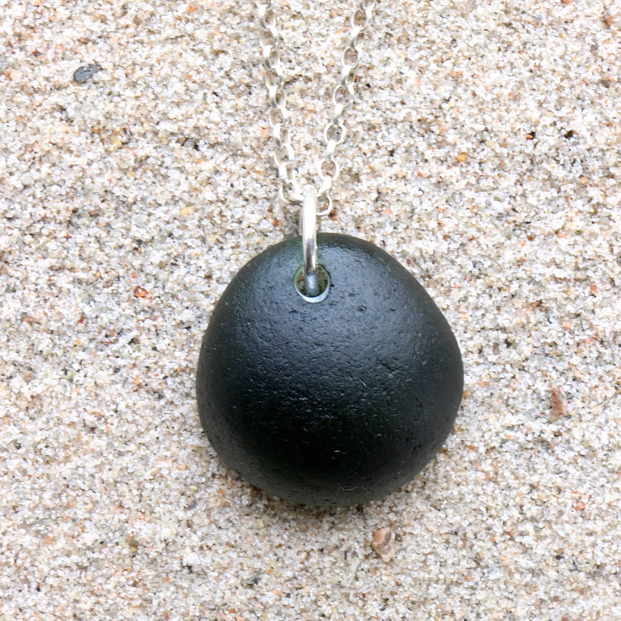 Havsglaset är samlat längs Skånes stränder och helt obearbetat, endast varsamt tvättat och borrat.