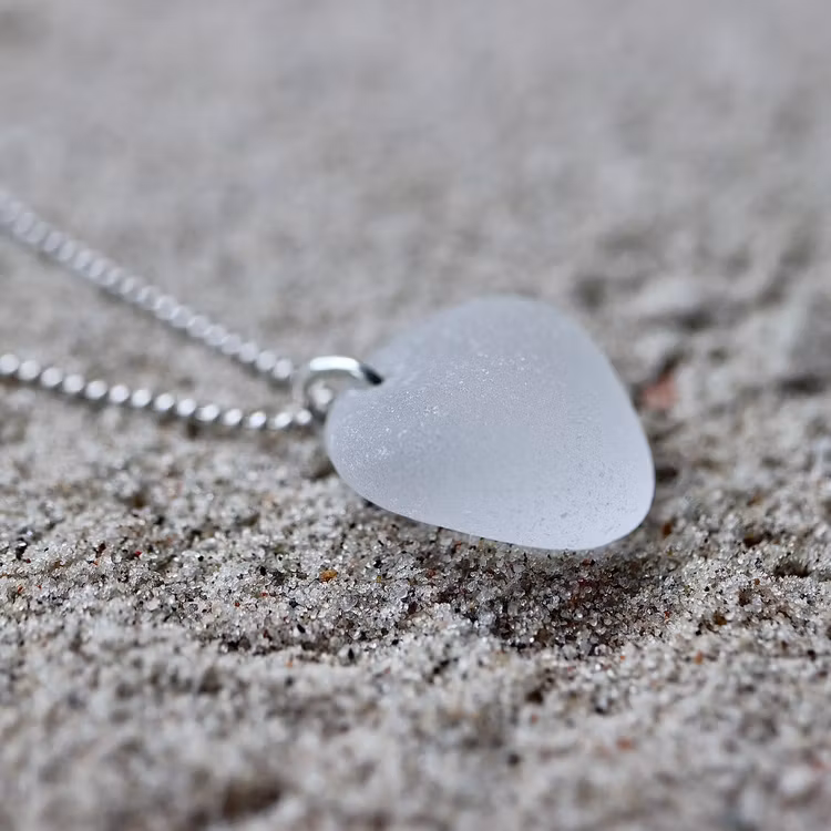 Havsglaset är samlat längs Skånes stränder och helt obearbetat, endast varsamt tvättat och borrat.